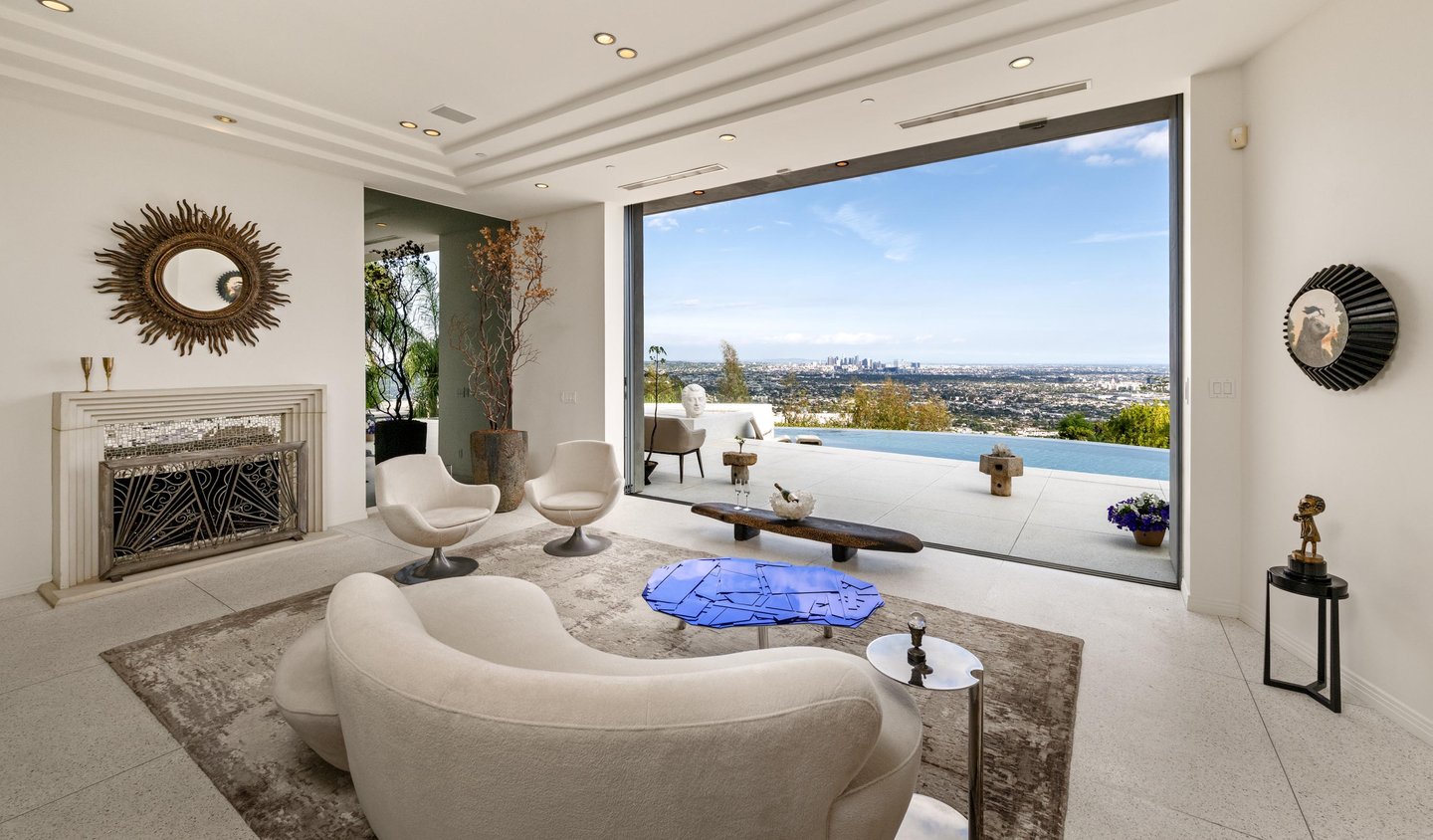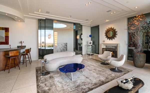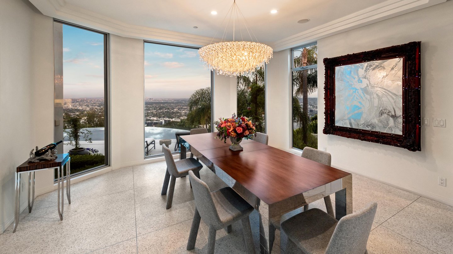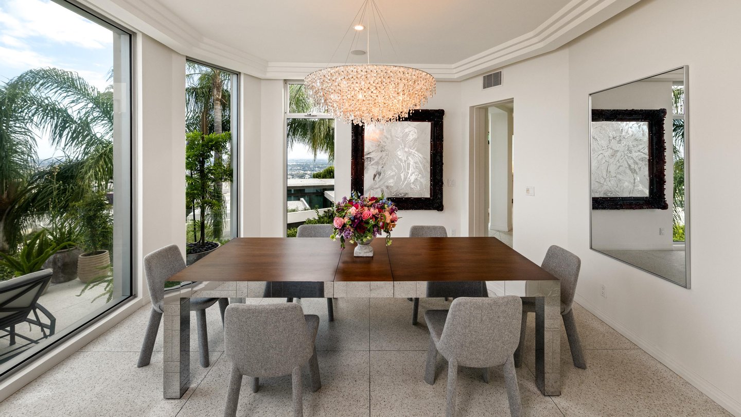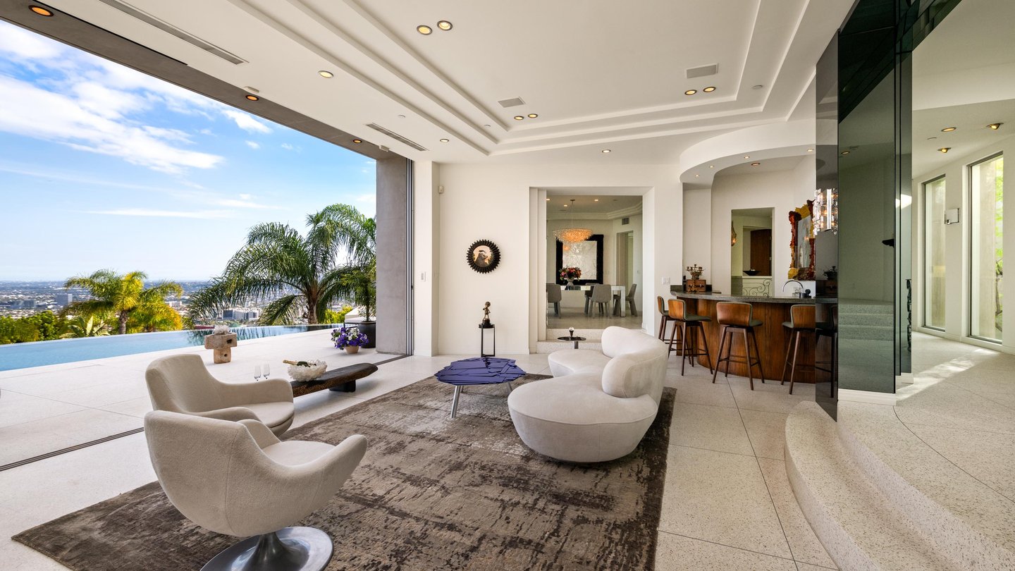 Auf dem Grundgestein über der ersten Reihe der Bird Streets thronend, hebt sich dieses seltene Art-Déco-Pendant als eines der architektonisch herausragendsten Anwesen in den Hollywood Hills ab. Vom Boden bis zur Decke verschwindende Fenster rahmen panoramische Stadtlandschaften wie lebendige Kunstwerke ein, während das abgesenkte Wohnzimmer den Raum mit müheloser Dramatik beherrscht. Ein Infinity-Pool, Spa und eine Terrazzo-Terrasse bieten die Bühne für Unterhaltung im Freien unter offenem Himmel. Die Gourmetküche führt in eine runde Frühstücksecke, die im Licht getaucht ist, und der Hauptflügel – ein abgelegener Rückzugsort – bietet einen Kamin, Kettenverkleidung aus Perlmutt und direkten Zugang zum Außen-Spa. Ein Heimkino, ein formeller Speisesaal und ein boutique-würdiger Kleiderschrank vervollständigen diese einzigartige Szene mit Momenten aus dem Besten von West Hollywood und Beverly Hills.