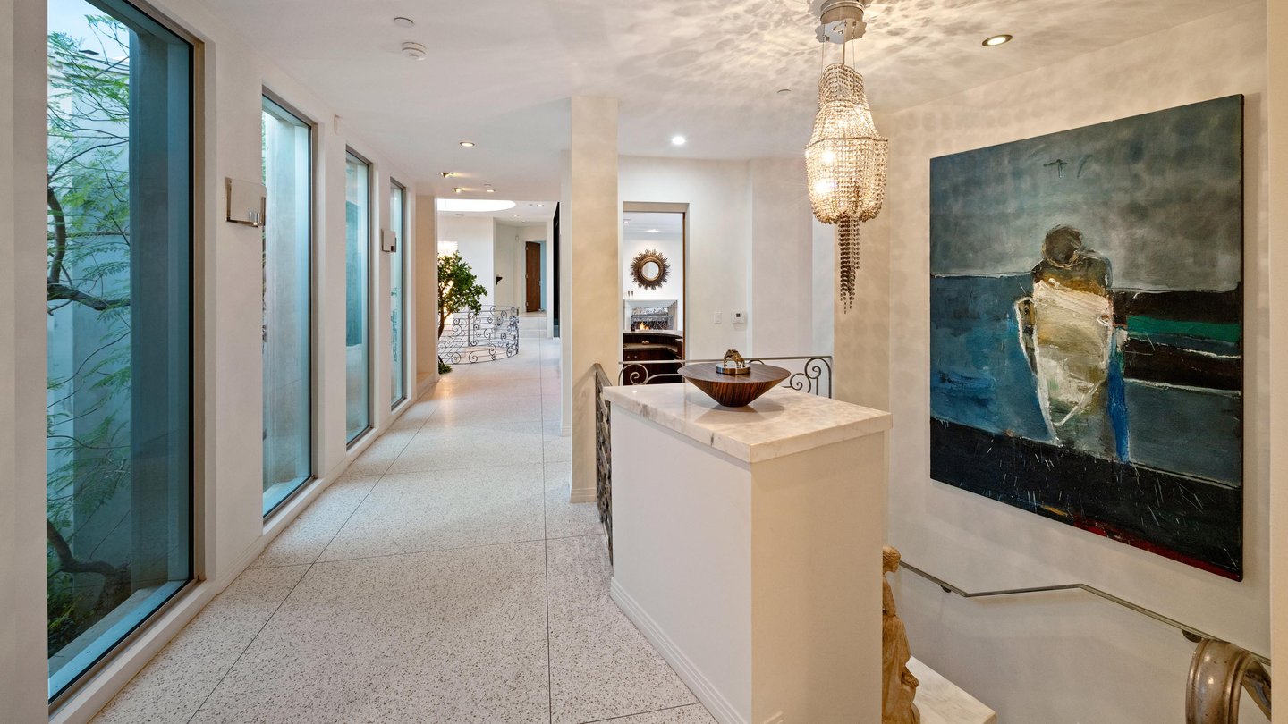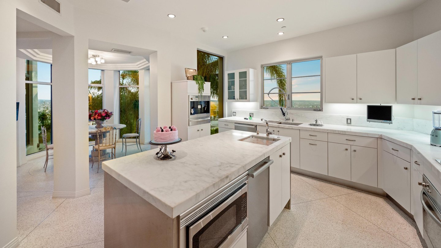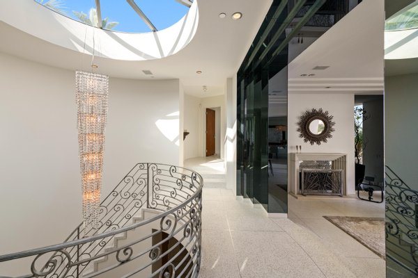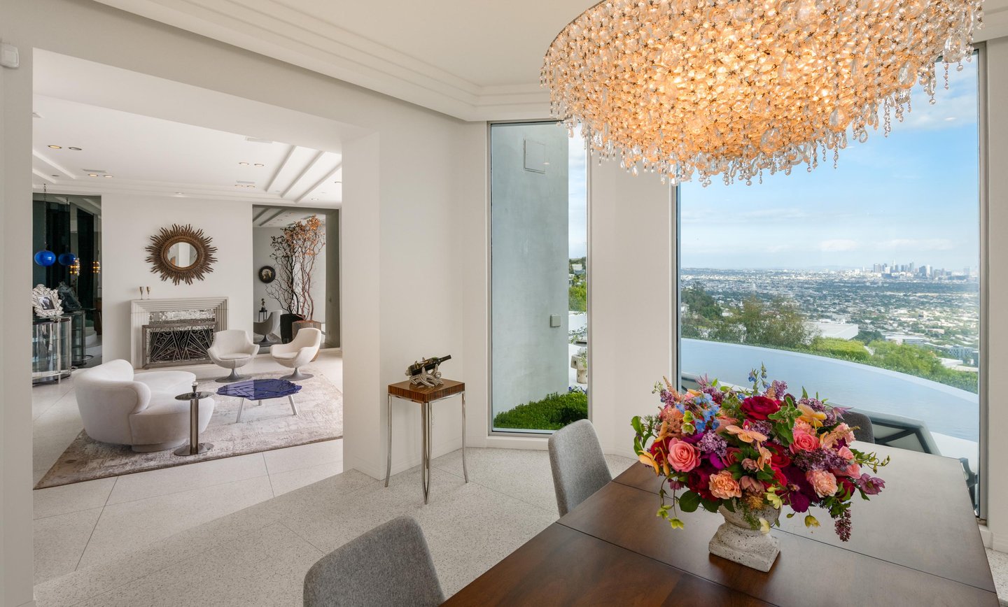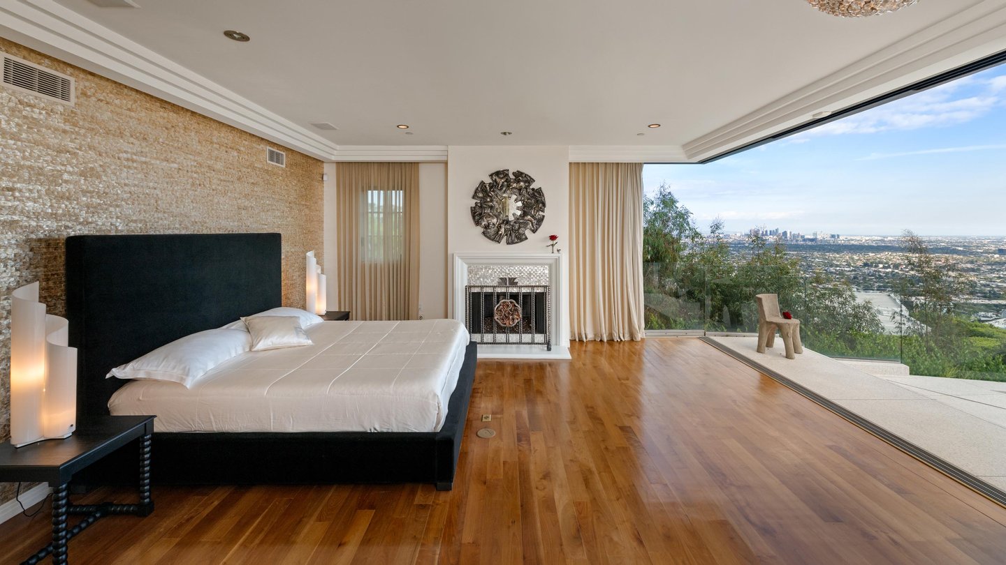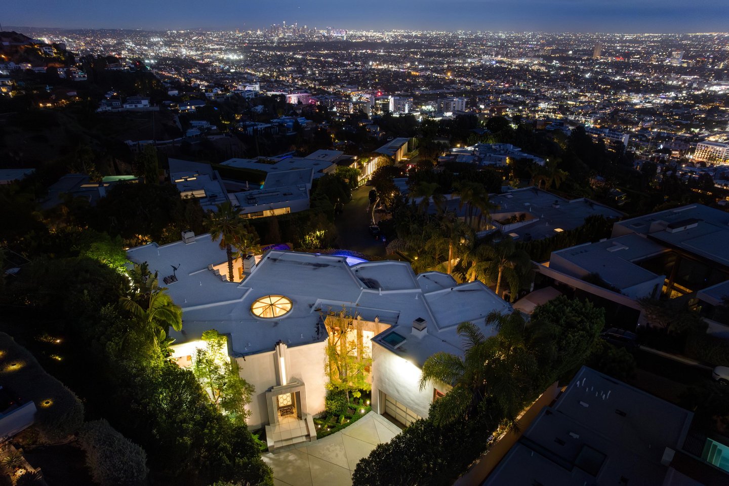 Auf dem Grundgestein über der ersten Reihe der Bird Streets thronend, hebt sich dieses seltene Art-Déco-Pendant als eines der architektonisch herausragendsten Anwesen in den Hollywood Hills ab. Vom Boden bis zur Decke verschwindende Fenster rahmen panoramische Stadtlandschaften wie lebendige Kunstwerke ein, während das abgesenkte Wohnzimmer den Raum mit müheloser Dramatik beherrscht. Ein Infinity-Pool, Spa und eine Terrazzo-Terrasse bieten die Bühne für Unterhaltung im Freien unter offenem Himmel. Die Gourmetküche führt in eine runde Frühstücksecke, die im Licht getaucht ist, und der Hauptflügel – ein abgelegener Rückzugsort – bietet einen Kamin, Kettenverkleidung aus Perlmutt und direkten Zugang zum Außen-Spa. Ein Heimkino, ein formeller Speisesaal und ein boutique-würdiger Kleiderschrank vervollständigen diese einzigartige Szene mit Momenten aus dem Besten von West Hollywood und Beverly Hills.
