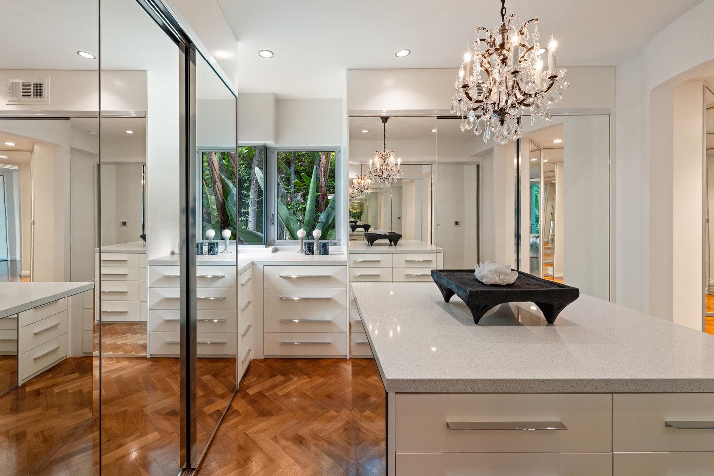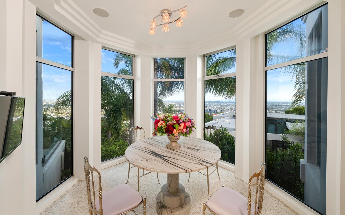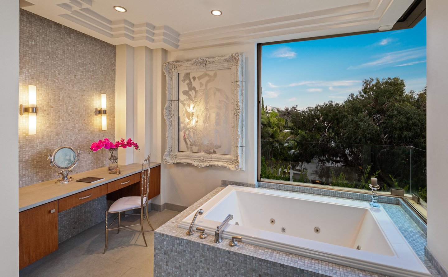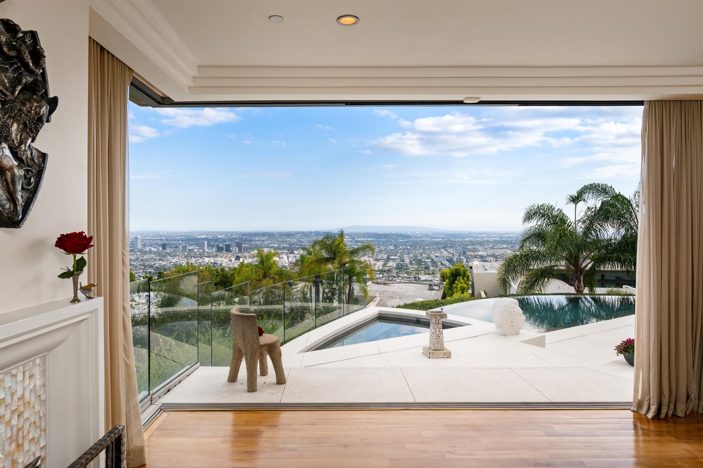 Auf dem Grundgestein über der ersten Reihe der Bird Streets thronend, hebt sich dieses seltene Art-Déco-Pendant als eines der architektonisch herausragendsten Anwesen in den Hollywood Hills ab. Vom Boden bis zur Decke verschwindende Fenster rahmen panoramische Stadtlandschaften wie lebendige Kunstwerke ein, während das abgesenkte Wohnzimmer den Raum mit müheloser Dramatik beherrscht. Ein Infinity-Pool, Spa und eine Terrazzo-Terrasse bieten die Bühne für Unterhaltung im Freien unter offenem Himmel. Die Gourmetküche führt in eine runde Frühstücksecke, die im Licht getaucht ist, und der Hauptflügel – ein abgelegener Rückzugsort – bietet einen Kamin, Kettenverkleidung aus Perlmutt und direkten Zugang zum Außen-Spa. Ein Heimkino, ein formeller Speisesaal und ein boutique-würdiger Kleiderschrank vervollständigen diese einzigartige Szene mit Momenten aus dem Besten von West Hollywood und Beverly Hills.