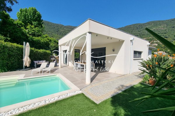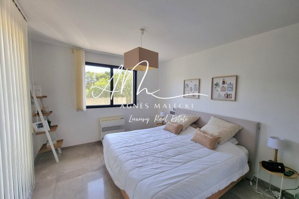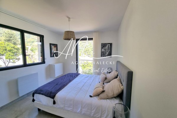 Cavalier liegt eingebettet in das Grün dieses modernen Hauses ohne jegliche Ergänzung von 180 m² und ist nach Süden ausgerichtet, mit Schwimmbad und Garage – es bietet nämlich eine Eingangshalle, die auf ein schönes Wohnzimmer/Wohnzimmer mit eingebauter Küche, ein Schlafzimmer mit Dusche, ein kleines Schlafzimmer, ein Hauptschlafzimmer mit Dusche, alles mit Blick nach draußen mit Poolterrasse und Poolhaus. Im Erdgeschoss: Wohnung mit 2 Schlafzimmern, Wohnzimmer, Küchenbereich, Badezimmer. Angebaute Garage/Parkplatz beim Ankommen vor der Villa... Ideal, um Freunde zu empfangen oder zu vermieten.