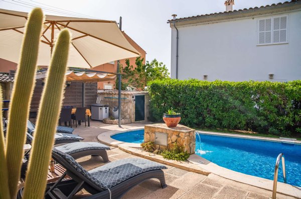 Der Außenbereich überzeugt mit einem schönen Garten und einem privaten Pool. Eine Poolheizung kann optional hinzugebucht werden, ist jedoch nicht in der Pauschalmiete enthalten. So lässt sich der Pool auch in den kühleren Monaten angenehm nutzen und Sie können die milden Wintertage in vollen Zügen genießen sowie die Ruhe fernab vom Alltag erleben.