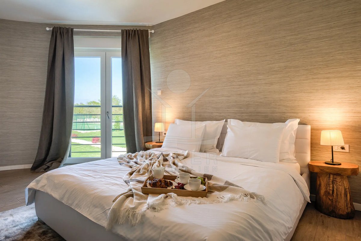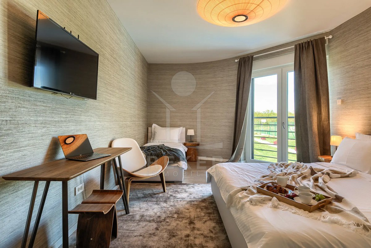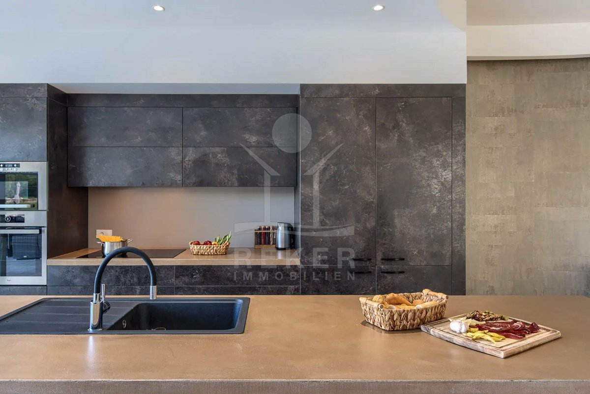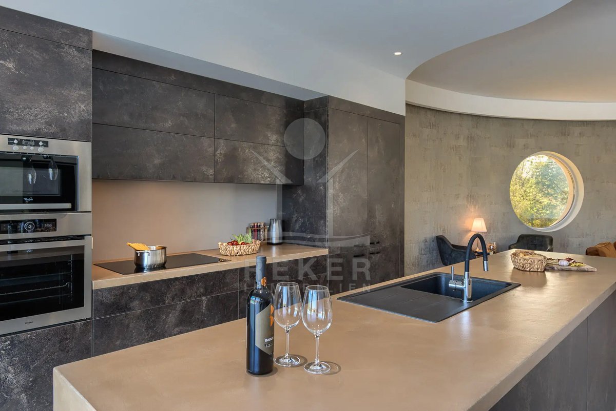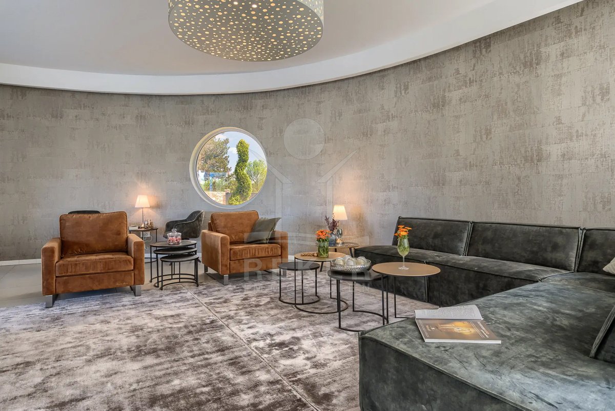 Diese Villa befindet sich nahe Svetvinčenat, im unberührten Süden Istriens. Sie genießen hier viel Ruhe und Natur. Gleichzeitig erreichen Sie Pula, Rovinj und Poreč auf gutem Weg. Das rund 10.000 m² große Anwesen ist komplett eingezäunt, aufwendig gestaltet und bietet ein hohes Maß an Privatsphäre. Schon die Zufahrt setzt den Ton: Ein automatisches Tor führt auf das Grundstück. Dort stehen sichere Stellplätze für bis zu 6 Fahrzeuge und eine Wallbox für Elektroautos bereit.