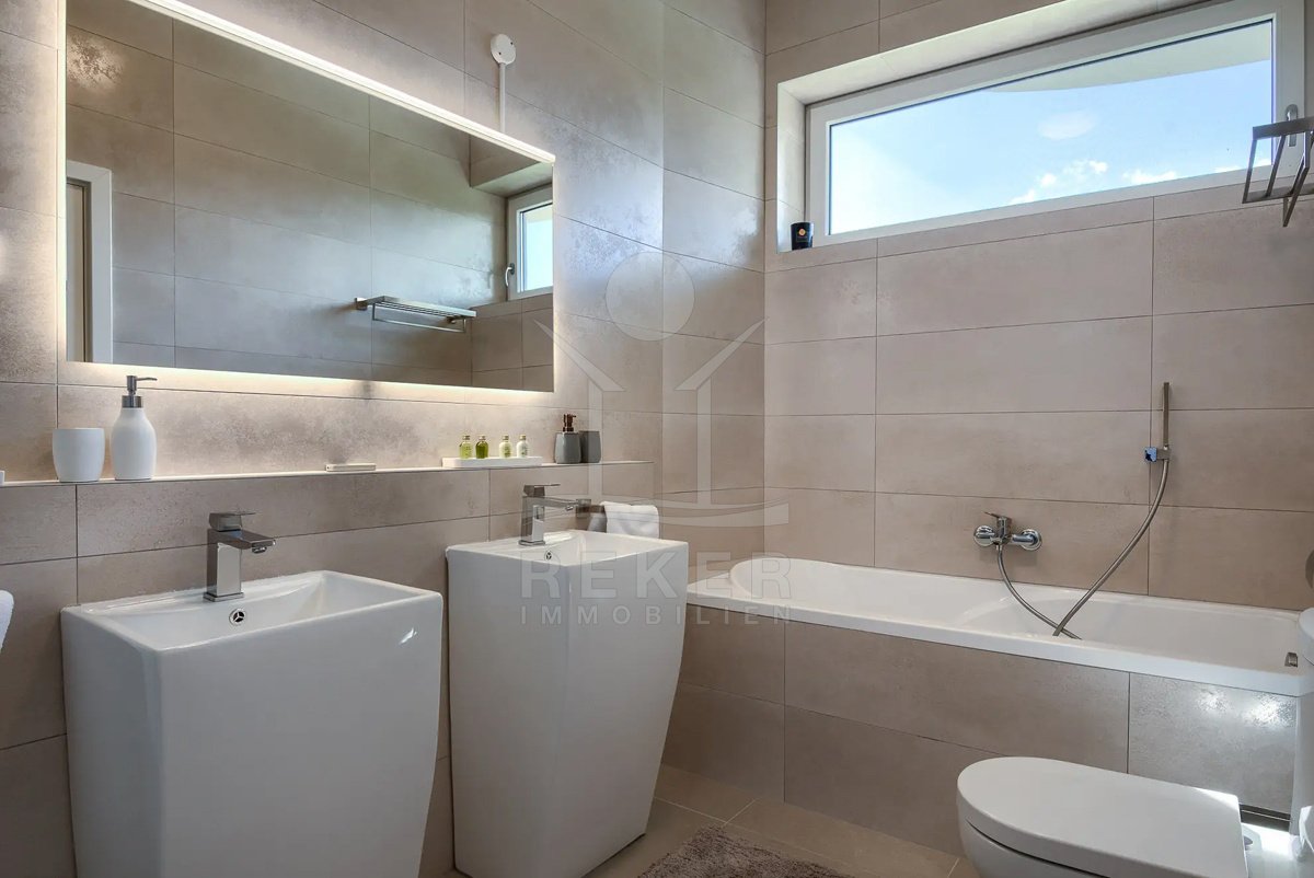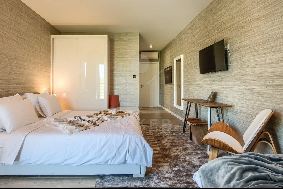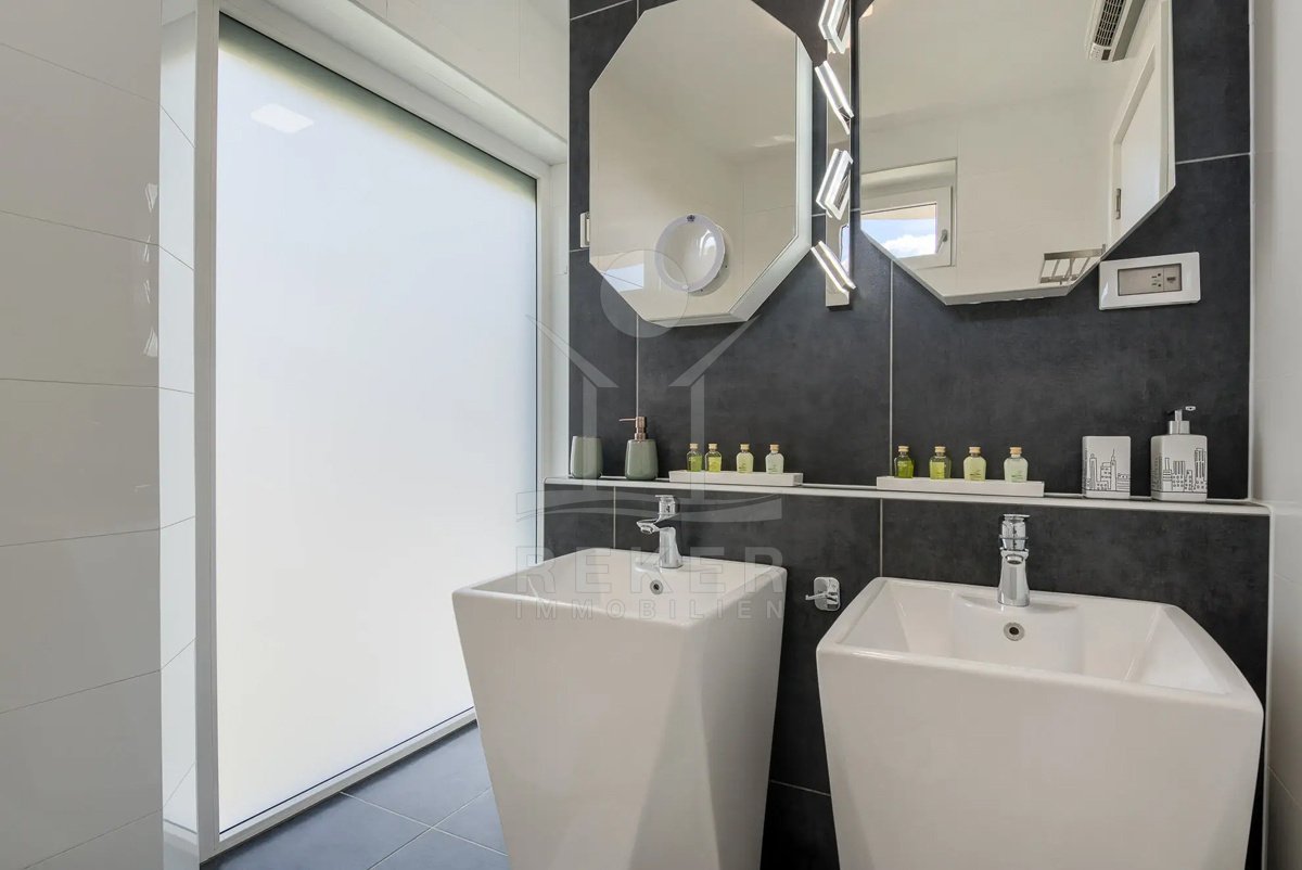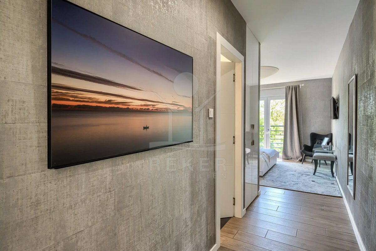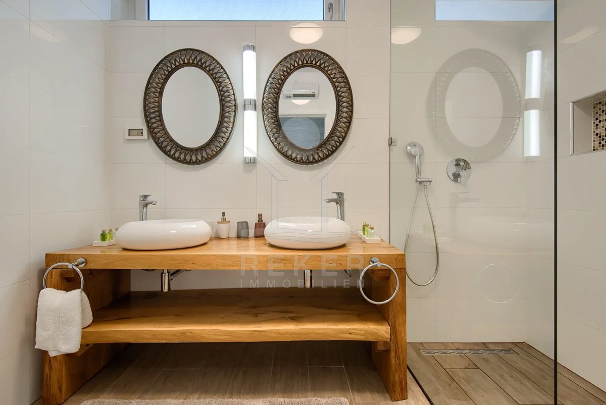 Diese Villa befindet sich nahe Svetvinčenat, im unberührten Süden Istriens. Sie genießen hier viel Ruhe und Natur. Gleichzeitig erreichen Sie Pula, Rovinj und Poreč auf gutem Weg. Das rund 10.000 m² große Anwesen ist komplett eingezäunt, aufwendig gestaltet und bietet ein hohes Maß an Privatsphäre. Schon die Zufahrt setzt den Ton: Ein automatisches Tor führt auf das Grundstück. Dort stehen sichere Stellplätze für bis zu 6 Fahrzeuge und eine Wallbox für Elektroautos bereit.