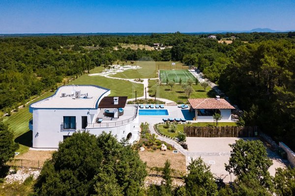 Diese Villa befindet sich nahe Svetvinčenat, im unberührten Süden Istriens. Sie genießen hier viel Ruhe und Natur. Gleichzeitig erreichen Sie Pula, Rovinj und Poreč auf gutem Weg. Das rund 10.000 m² große Anwesen ist komplett eingezäunt, aufwendig