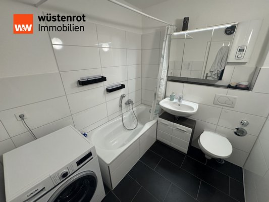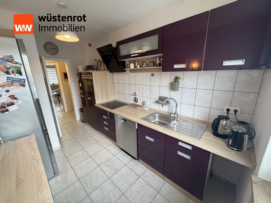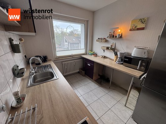 Eine separate Küche ist vorhanden; die Einbauküche kann ohne Elektrogeräte übernommen werden. Das Badezimmer verfügt über einen Waschmaschinenanschluss.