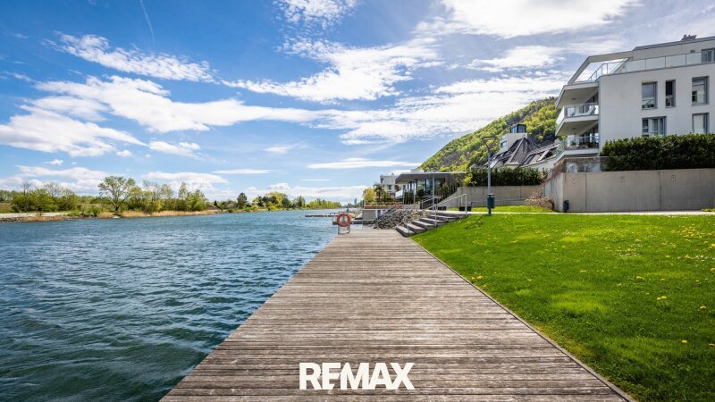 Direkt am Wasser gelegen, eröffnet sich ein freier Blick über die Donau & Wien – mit einer seltenen Kombination von Weite und Privatsphäre.