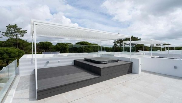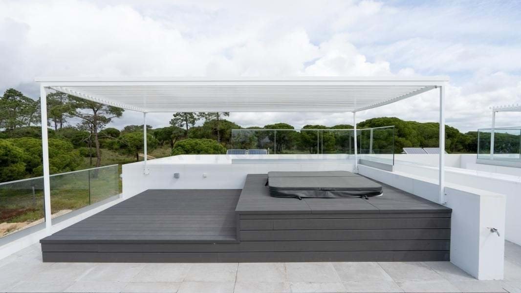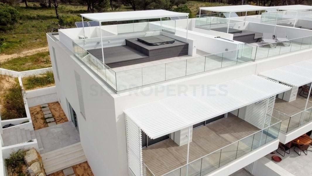 Auf dem Dachterrasse genießen Sie ein Jacuzzi mit Panorama-Deck und Meerblick – ideal für Entspannungsmomente beim Sonnenuntergang.