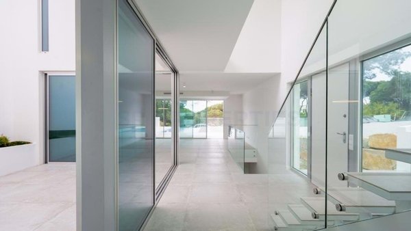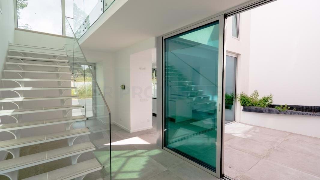 Faszinierendes, modern architektonisch gestaltetes Haus, geprägt von zeitgenössischen Linien und außergewöhnlicher Helligkeit dank hervorragender Nutzung des natürlichen Lichts in allen Räumen.