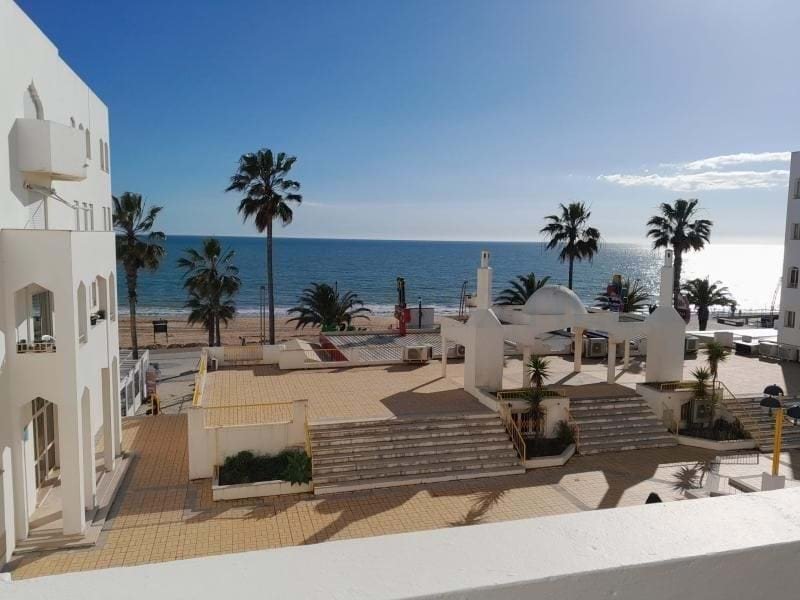 Wir präsentieren diese fantastische T2-Wohnung in privilegierter Lage direkt am Meer in Quarteira, wo das Rauschen der Wellen und der atemberaubende Blick auf den Ozean Teil Ihres Alltags werden.