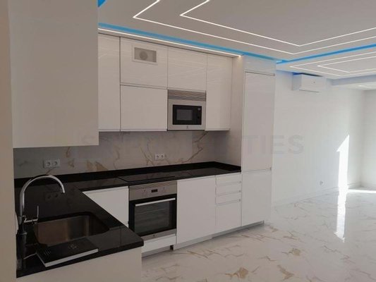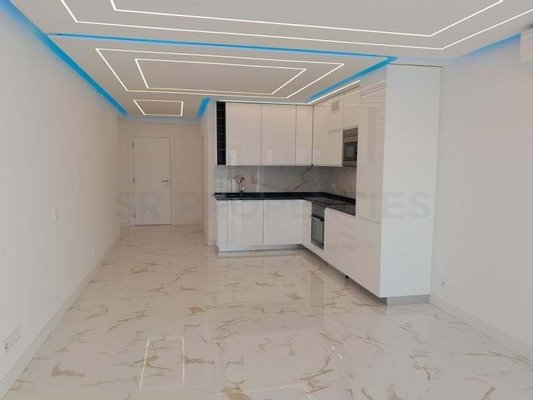 Völlig renoviert mit modernem Design und hochwertiger Ausstattung bietet diese Wohnung eine elegante und behagliche Atmosphäre. Der offene Wohnbereich integriert sich harmonisch mit der voll ausgestatteten Küche, die mit modernen Elektrogeräten ausgestattet ist und Funktionalität sowie Stil betont.