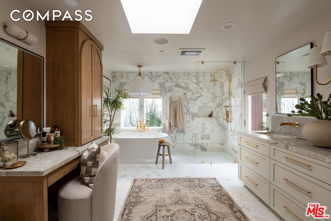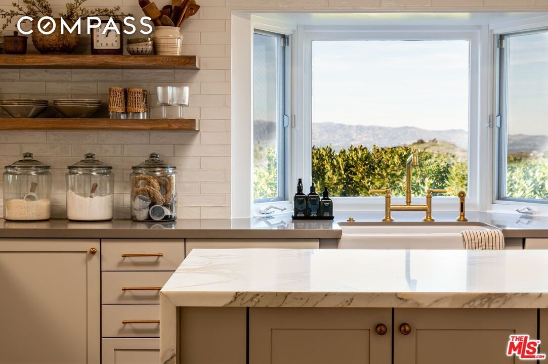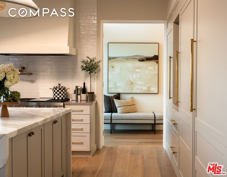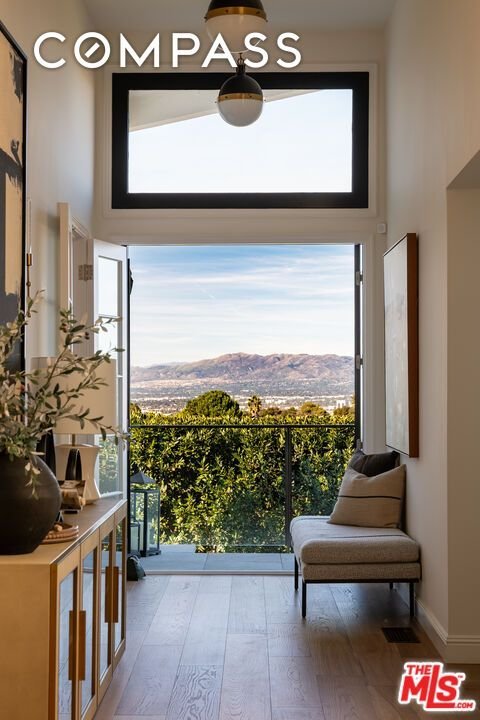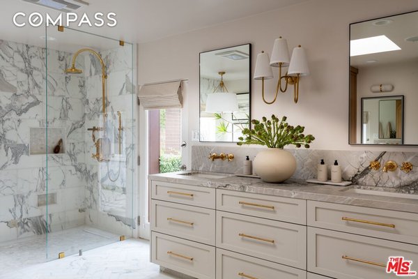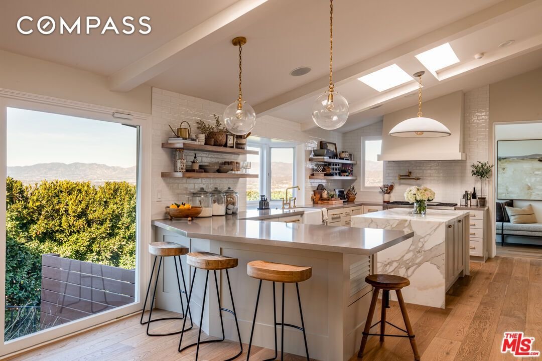Hinter den Toren von The Summit, einem der exklusivsten Viertel des Beverly Hills Post Office, fühlt sich dieses ruhig spektakuläre Wohnhaus wie ein privates Resort über der Stadt an. Sorgfältig neu gestaltet mit Blick auf Ruhe und gehobenes kalifornisches Wohnen, entfaltet sich das Haus mit sanftem natürlichem Licht, großzügigem Maßstab und nahtloser Verbindung zwischen Innen- und Außenbereichen. Die Hauptwohnräume bieten einen panoramischen Blick auf die Schlucht und ziehen den Blick über Baumwipfel und abendliche Sonnenuntergänge. Eine beruhigende Palette aus warmen Hölzern, geschichteten Texturen und skulpturaler Beleuchtung schafft eine Atmosphäre, die sowohl raffiniert als auch tief einladend ist. Die helle, luftige und wunderschön eingerichtete Küche verfügt über Calacatta Gold Marmorarbeitsplatten, unlackierte Messingbeschläge von Rejuvenation, offene Regale und eine sonnengewaschene Essecke. Es ist ein Raum, der die einfache Freude am Zusammenkommen, Kochen und Verweilen feiert. Der Garten ist ein eigener Zufluchtsort: ein Resort-ähnlicher Pool, eingerahmt von üppiger Landschaft, mehreren Lounge-Terrassen und intimen Designmomenten, die durch das Grün strömen. Es ist eine Umgebung, die wie eine ganz andere Welt wirkt, perfekt für lange Sommernachmittage oder unvergessliche Abende. Die privaten Räume bewahren das Gefühl der Ruhe fort. Die geräumige Hauptsuite verfügt über gewölbte, balkenförmige Decken, Gartenblick und einen gemütlichen Sitzbereich, der den Morgenkaffee in ein Ritual verwandelt. Ein stimmungsvolles, maßgeschneidertes Büro bietet eine ganz andere Energie. Maßgeschneidert, architektonisch und ideal für Fokus. Jede Ecke dieses Hauses wurde bedacht. Jede Sichtlinie kuratiert. Und jeder Raum ist so gestaltet, wie das Leben in The Summit sein soll: erhaben, friedlich, zeitlos. Eine seltene Gelegenheit, ein Haus zu besitzen, das Luxus mit Lebensqualität und hochwertiges Design mit Herz vereint.