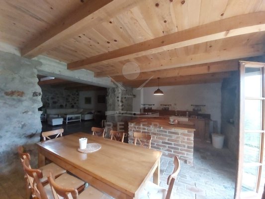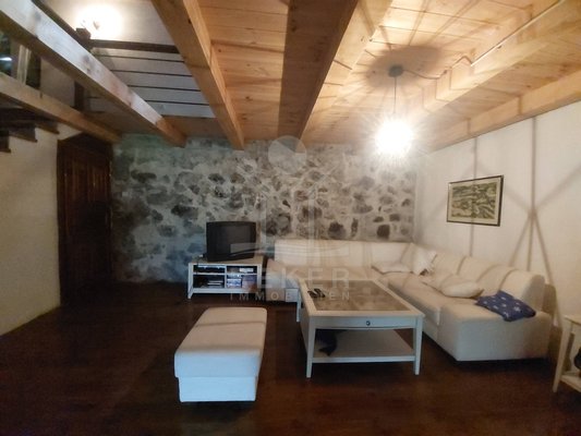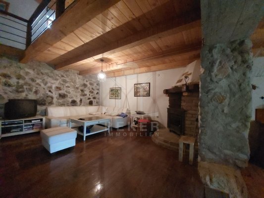 Sichtbare Holzbalken, Ziegelboden in der Küche und eine Galerie prägen den Charakter dieses Hauses. In Kombination mit der vollständigen Möblierung entsteht ein sofort nutzbares Gesamtpaket. Eine besondere Mischung aus Stil, Funktion und