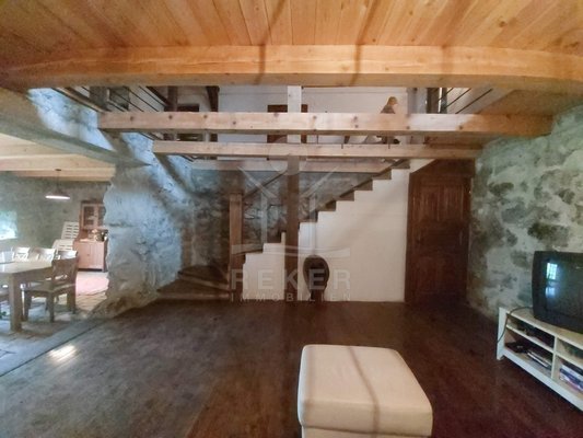 Sichtbare Holzbalken, Ziegelboden in der Küche und eine Galerie prägen den Charakter dieses Hauses. In Kombination mit der vollständigen Möblierung entsteht ein sofort nutzbares Gesamtpaket. Eine besondere Mischung aus Stil, Funktion und Nutzungsmöglichkeiten.