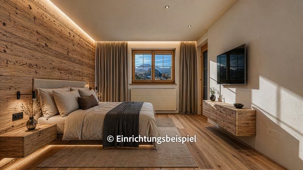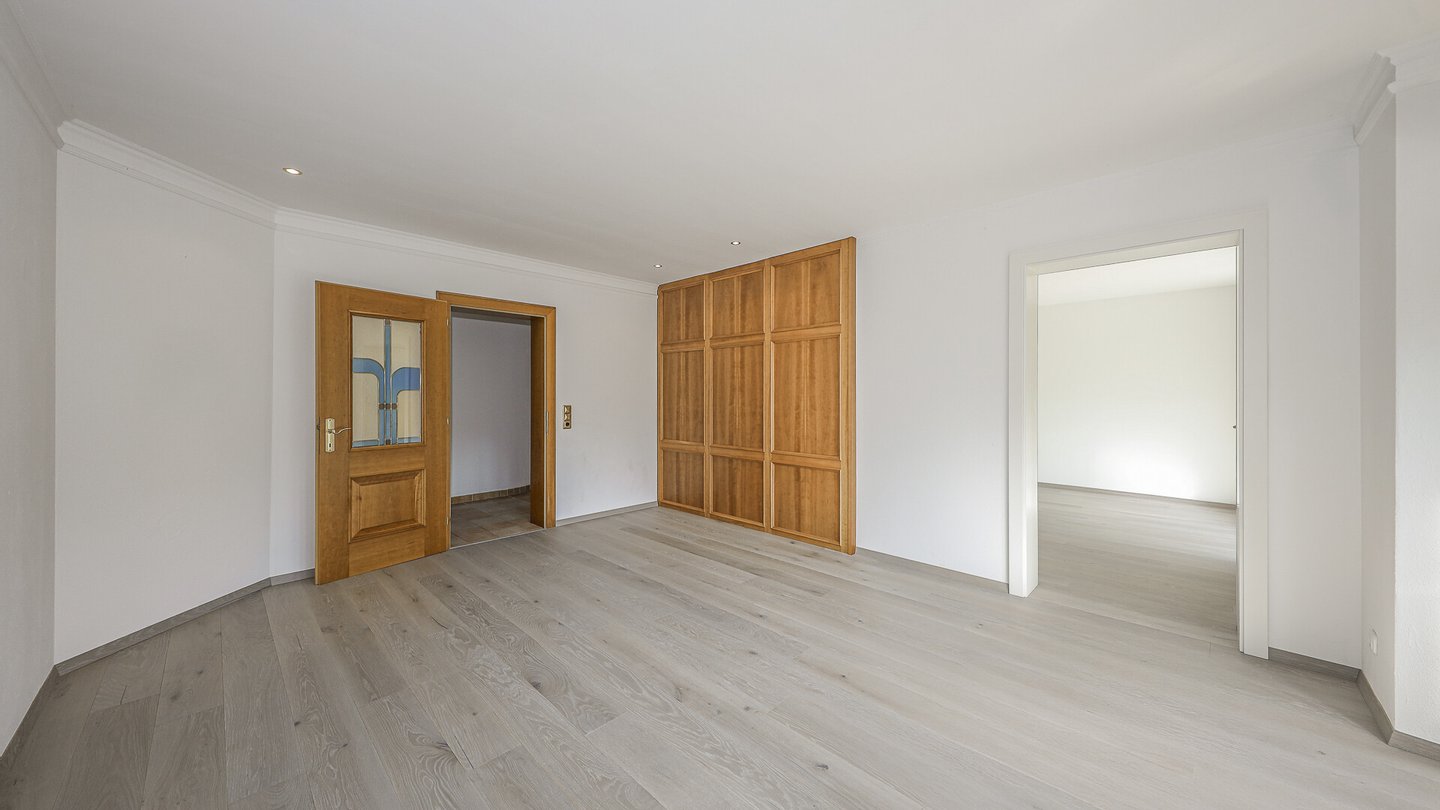 Von zwei Schlafzimmern gelangt man auf einen Richtung-Süden ausgerichteten, komplett überdachten Balkon.