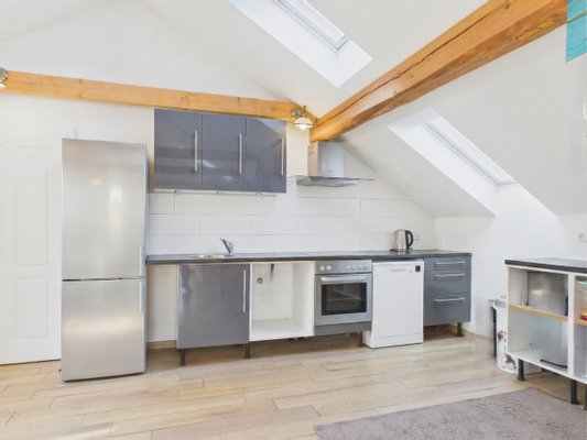 Dachgeschoss: Das 2013 ausgebaute Dachgeschoss bietet eine zusätzliche 2-Zimmer-Wohnung mit Studio, integrierter Küche und Kaminofen. Dank des offenen Treppenhauses lassen sich das Ober- und Dachgeschoss flexibel als eine sehr große, zusammenhängende Wohneinheit nutzen.