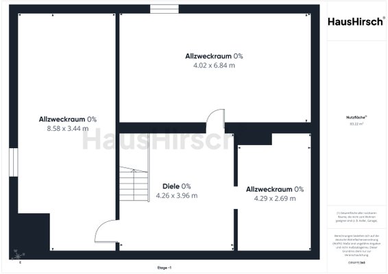 Die in diesem Exposé enthaltenen Angaben beruhen auf Informationen des Eigentümers bzw. Dritter und wurden von uns nicht eigenständig überprüft. Für deren Richtigkeit, Vollständigkeit und Aktualität übernehmen wir keine Gewähr; eine Haftung ist ausgeschlossen, soweit nicht Vorsatz oder grobe Fahrlässigkeit vorliegt.