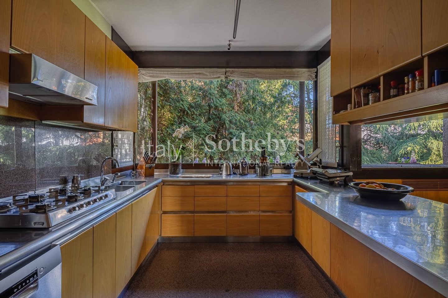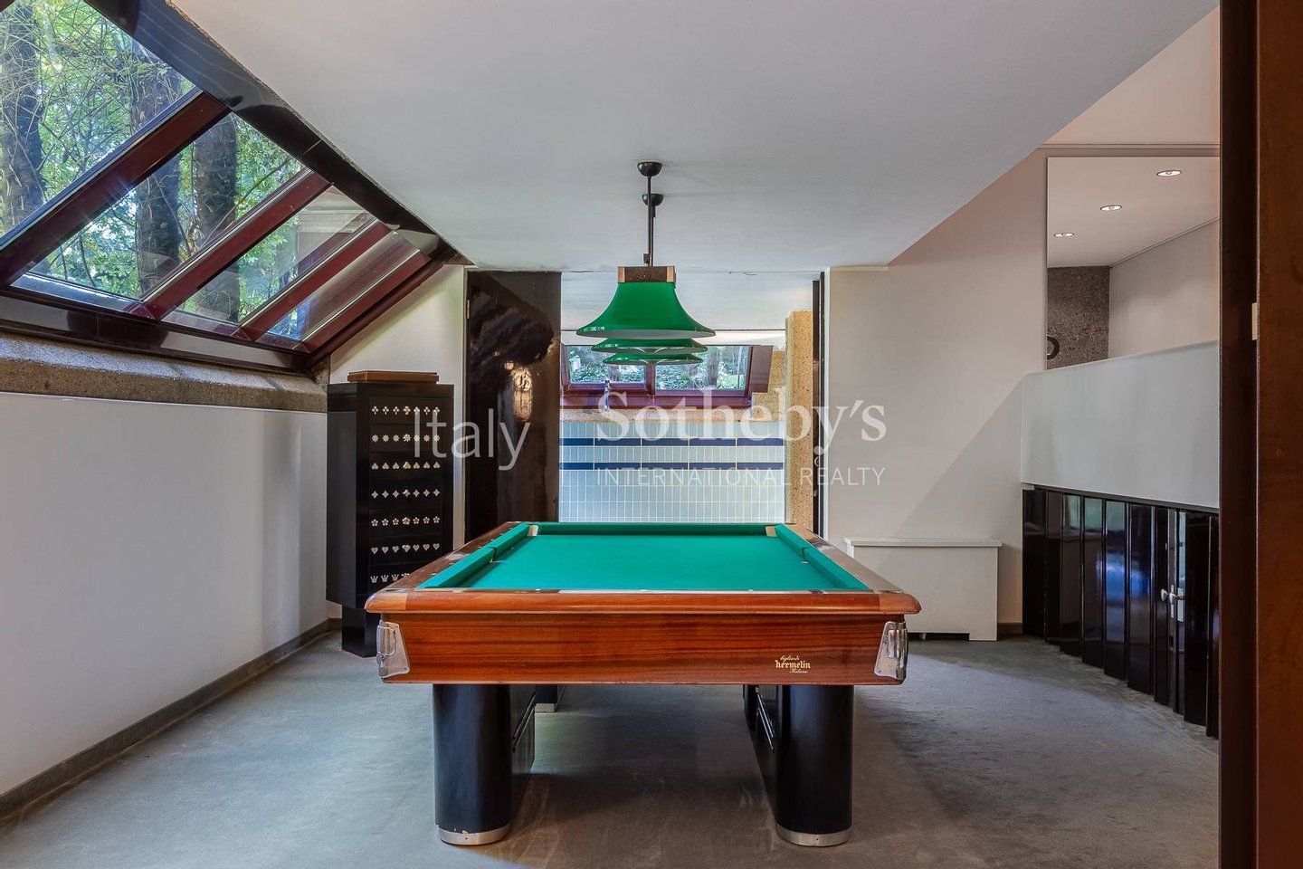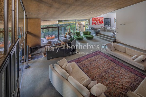 Spectacular designer villa conceived and built by architect Francesco Castiglioni in the early 1970s, still remarkably contemporary today thanks to its forward-thinking external forms, combined with magnificent interior spaces that interact in