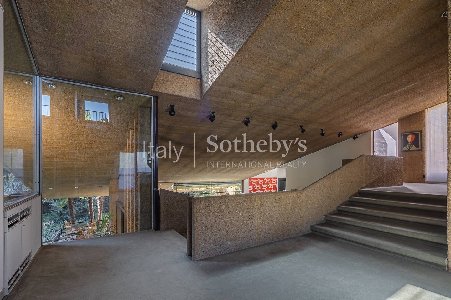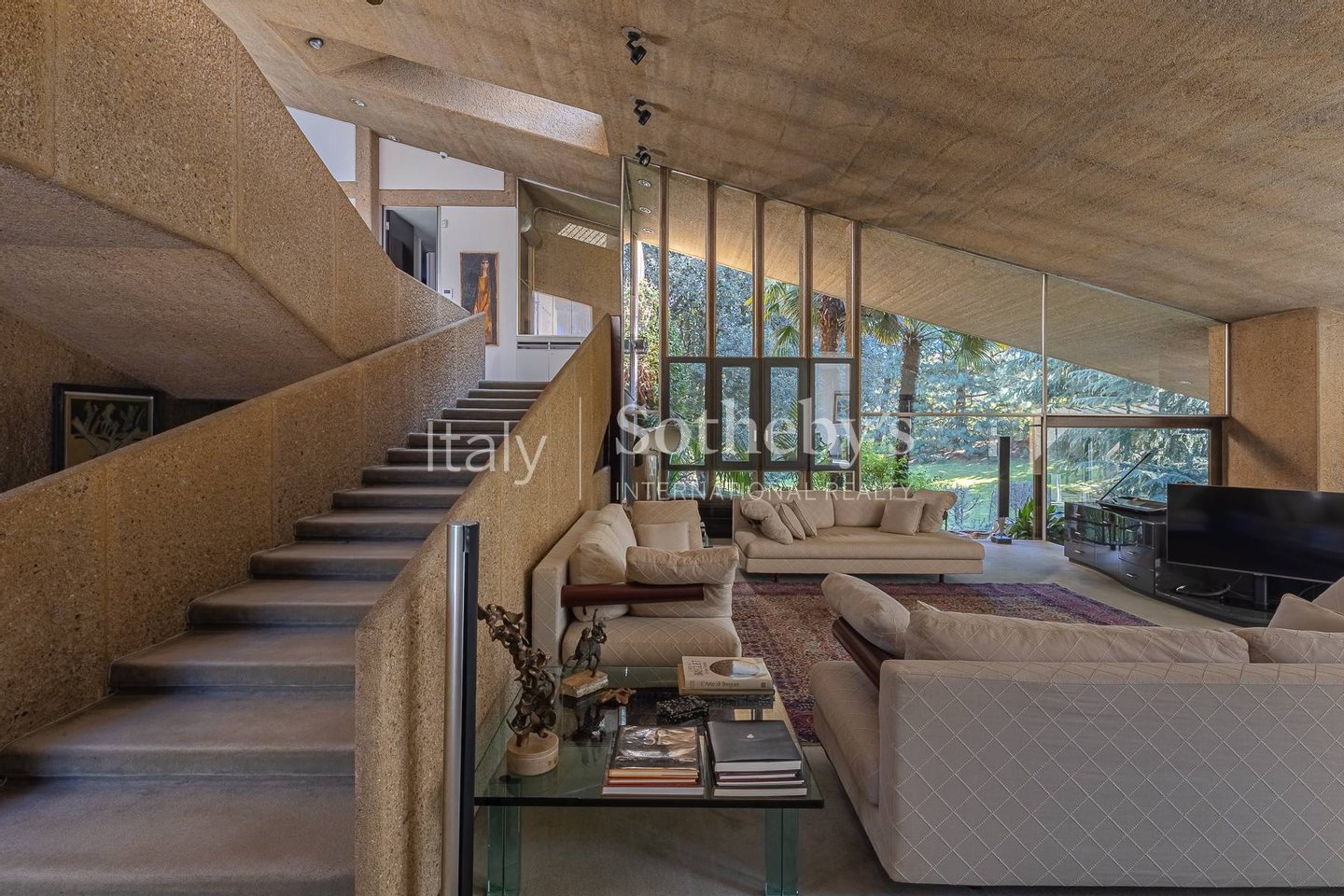 Spectacular designer villa conceived and built by architect Francesco Castiglioni in the early 1970s, still remarkably contemporary today thanks to its forward-thinking external forms, combined with magnificent interior spaces that interact in perfect harmony.
