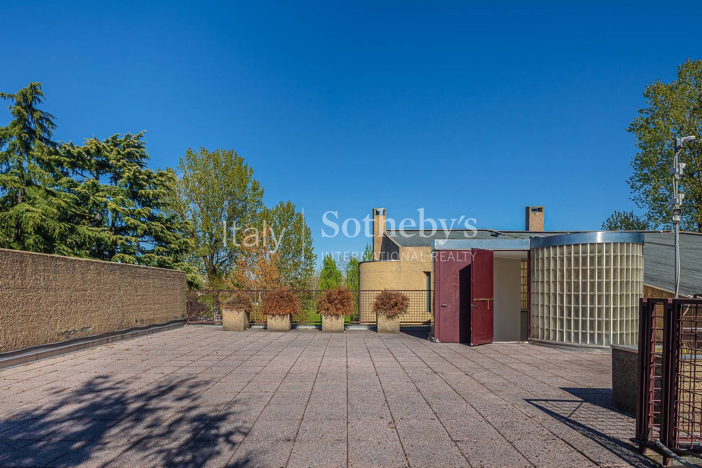 Located in one of the most residential areas of Cusano Milanino, less than half an hour from Milan, the villa is surrounded by greenery: private for the portion belonging to the property and public for the area directly in front of the building.