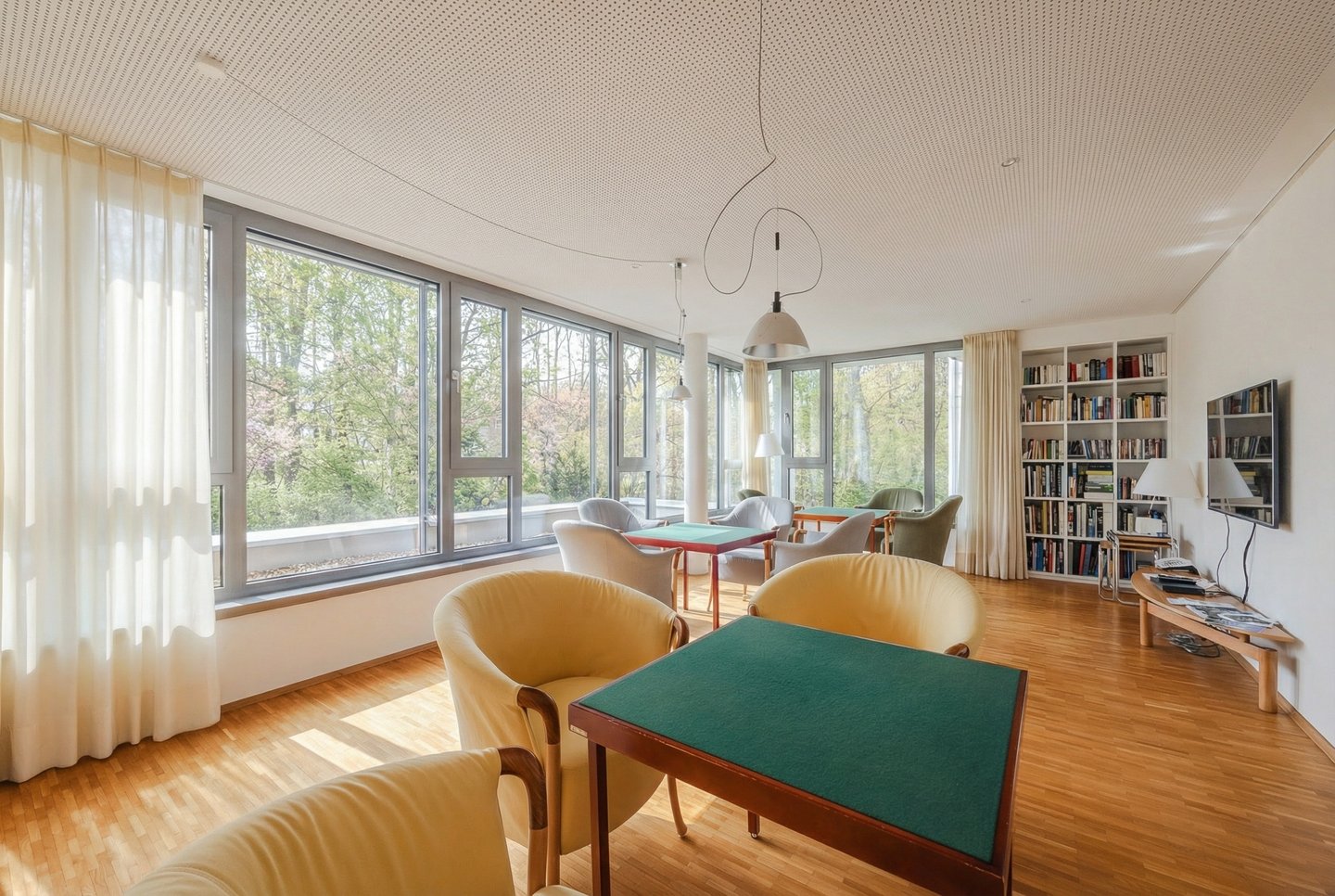 Die Anlage selbst überzeugt durch ein vielfältiges Angebot an Gemeinschaftseinrichtungen, die das tägliche Leben erleichtern und gleichzeitig das Miteinander fördern: Eine Bibliothek lädt zu ruhigen Stunden ein, der Wellnessbereich mit Sauna sorgt für Entspannung, während der große Gartenbereich mit einer gemeinschaftlich nutzbaren Terrasse und einem Gartenpavillon zusätzlichen Raum für Freizeit und Erholung bietet. Ein Spielezimmer ermöglicht gesellige Stunden, und die Tiefgarage mit Einzelstellplätzen sorgt für komfortables Parken.