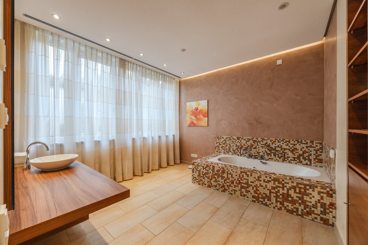 - elektrische Rollläden und einzeln regulierbare Fußbodenheizung