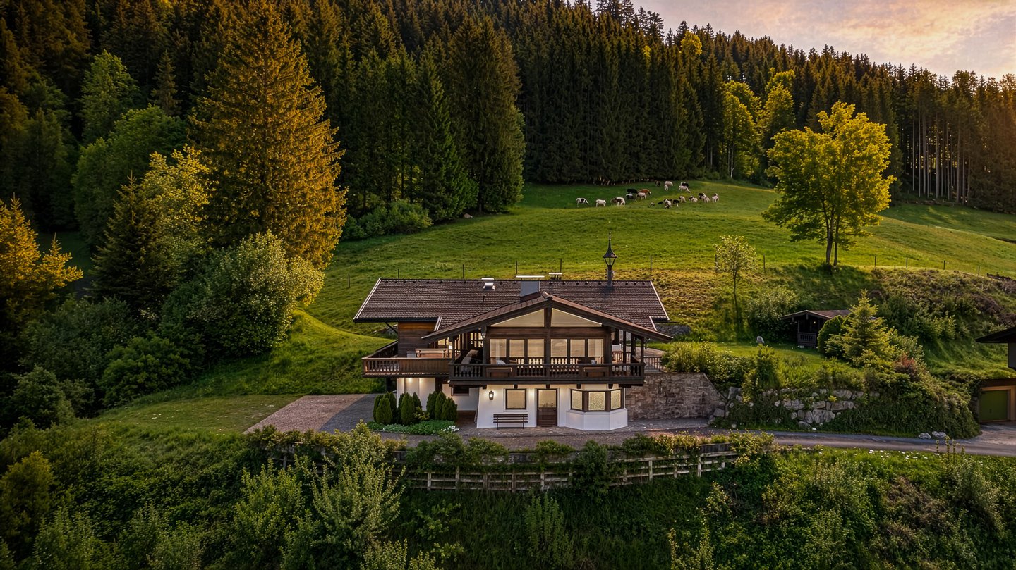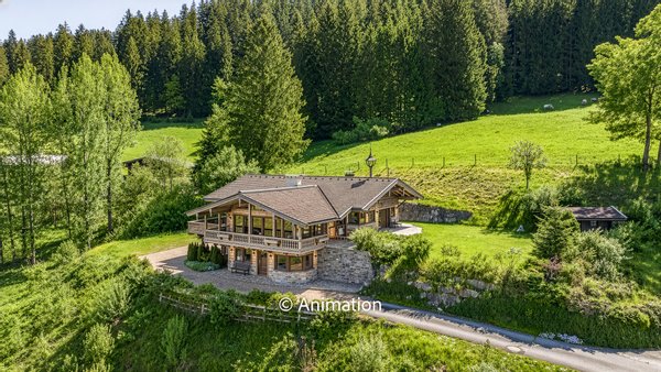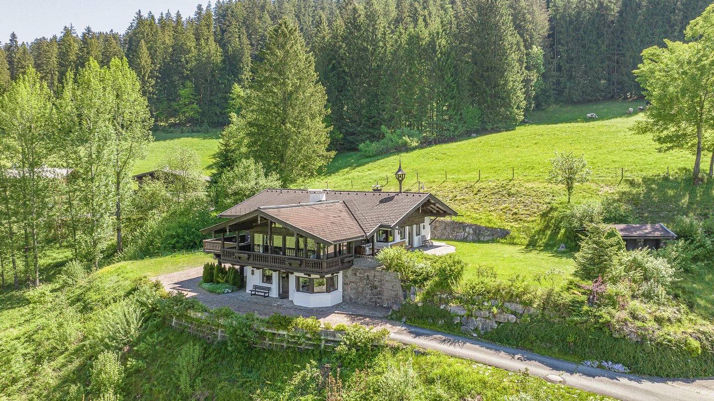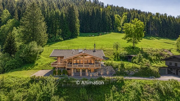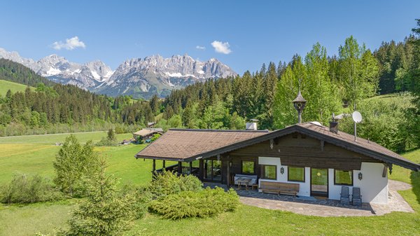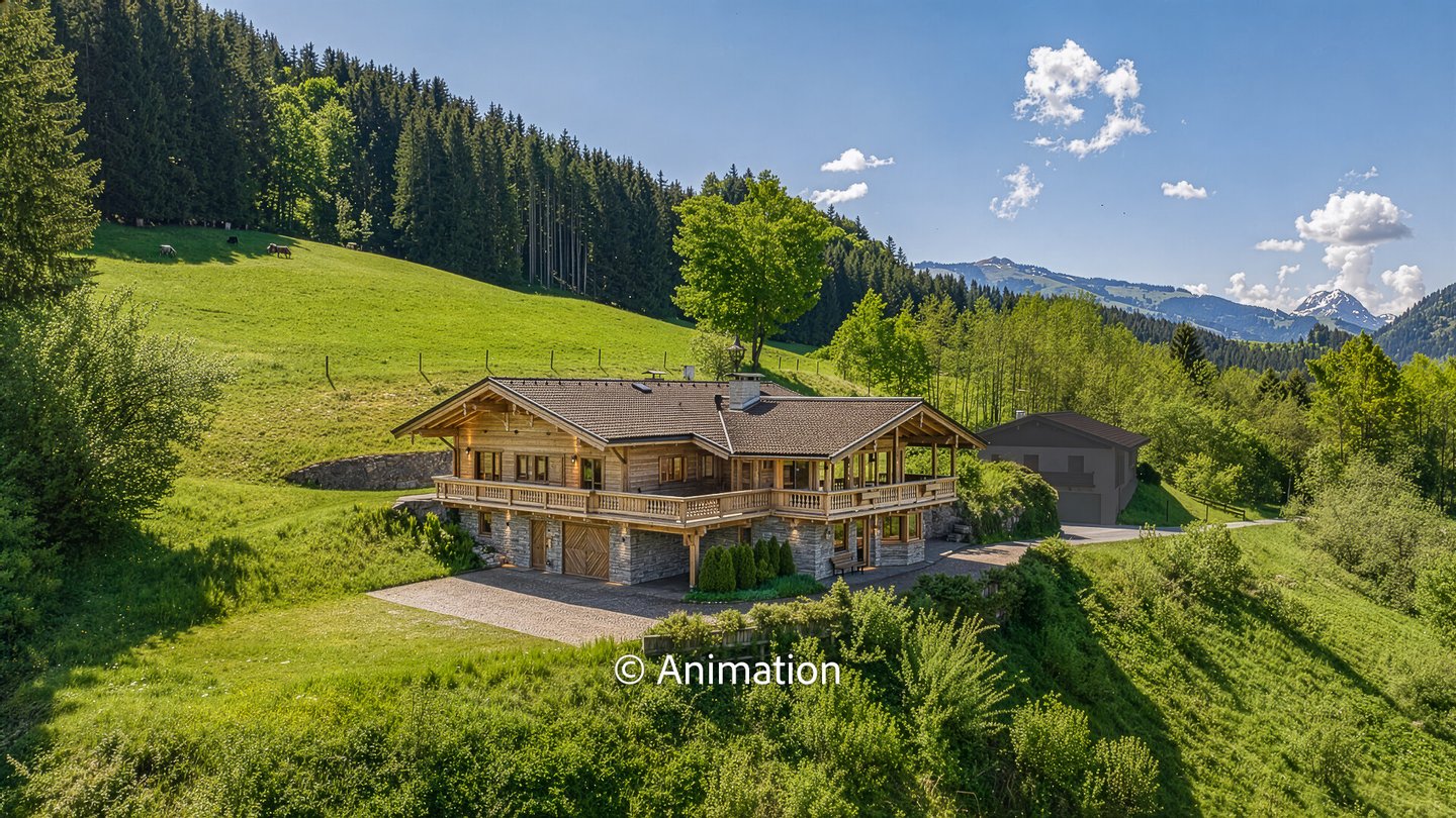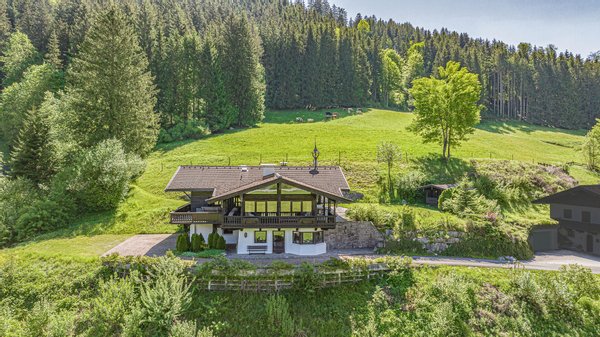 Das Anwesen auf 1.807 m² Grund thront auf einer leichten Anhöhe, mitten im Freiland und bietet daher einen unverbaubaren Ausblick auf den Astberg sowie den Wilden Kaiser. In unmittelbarer Nähe befindet sich nur ein einziges kleines Nachbarhaus (nicht ständig bewohnt), sodass man eigentlich von einer Alleinlage sprechen kann.
