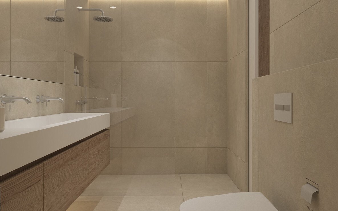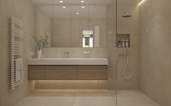 Die modern geschnittene Wohnung verfügt über insgesamt 3 Zimmer, davon 2 Schlafzimmer und 2 Badezimmer, beide ensuite und einem zusätzliches Gäste - WC.