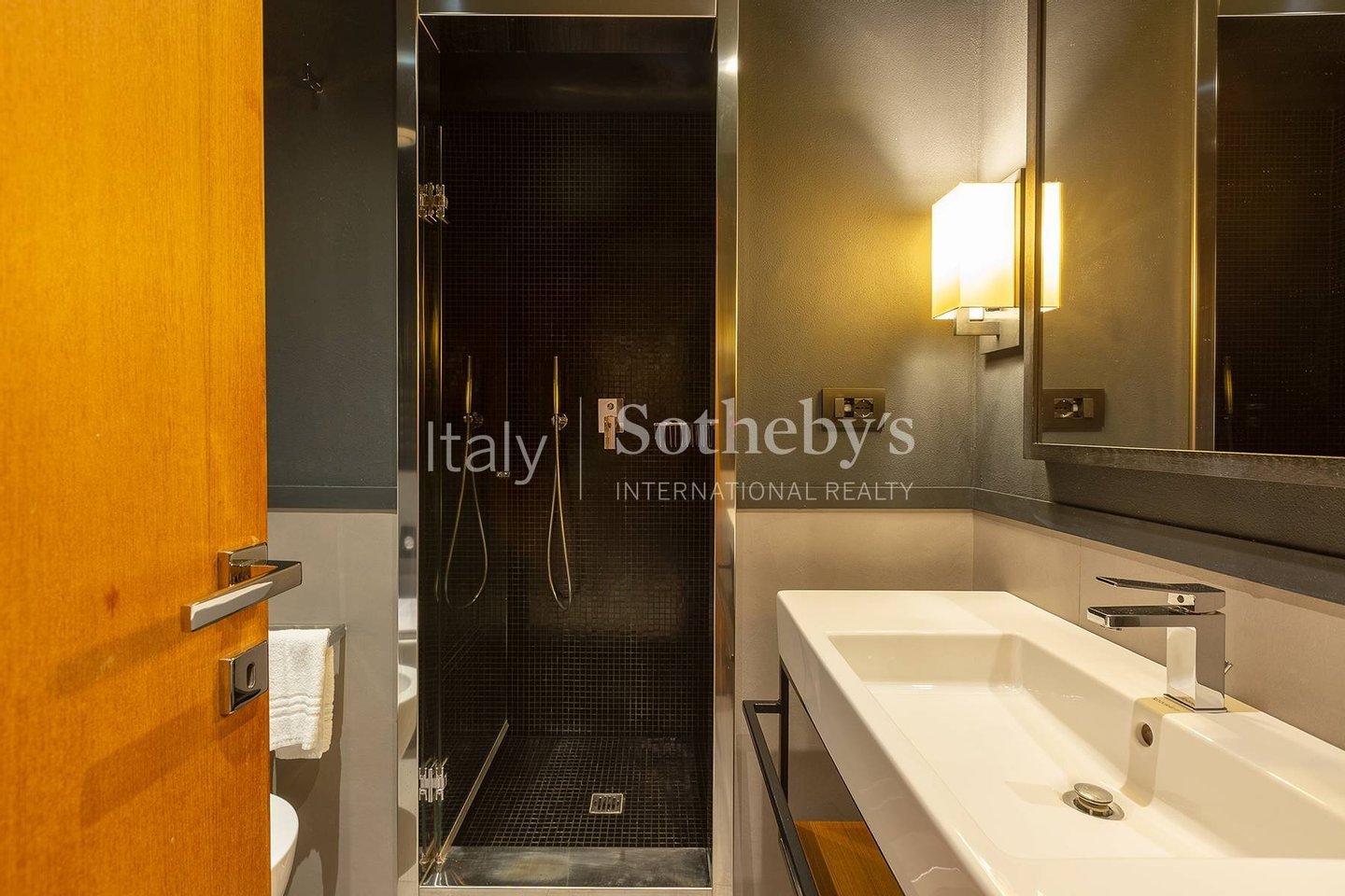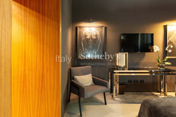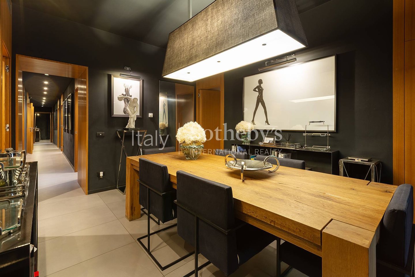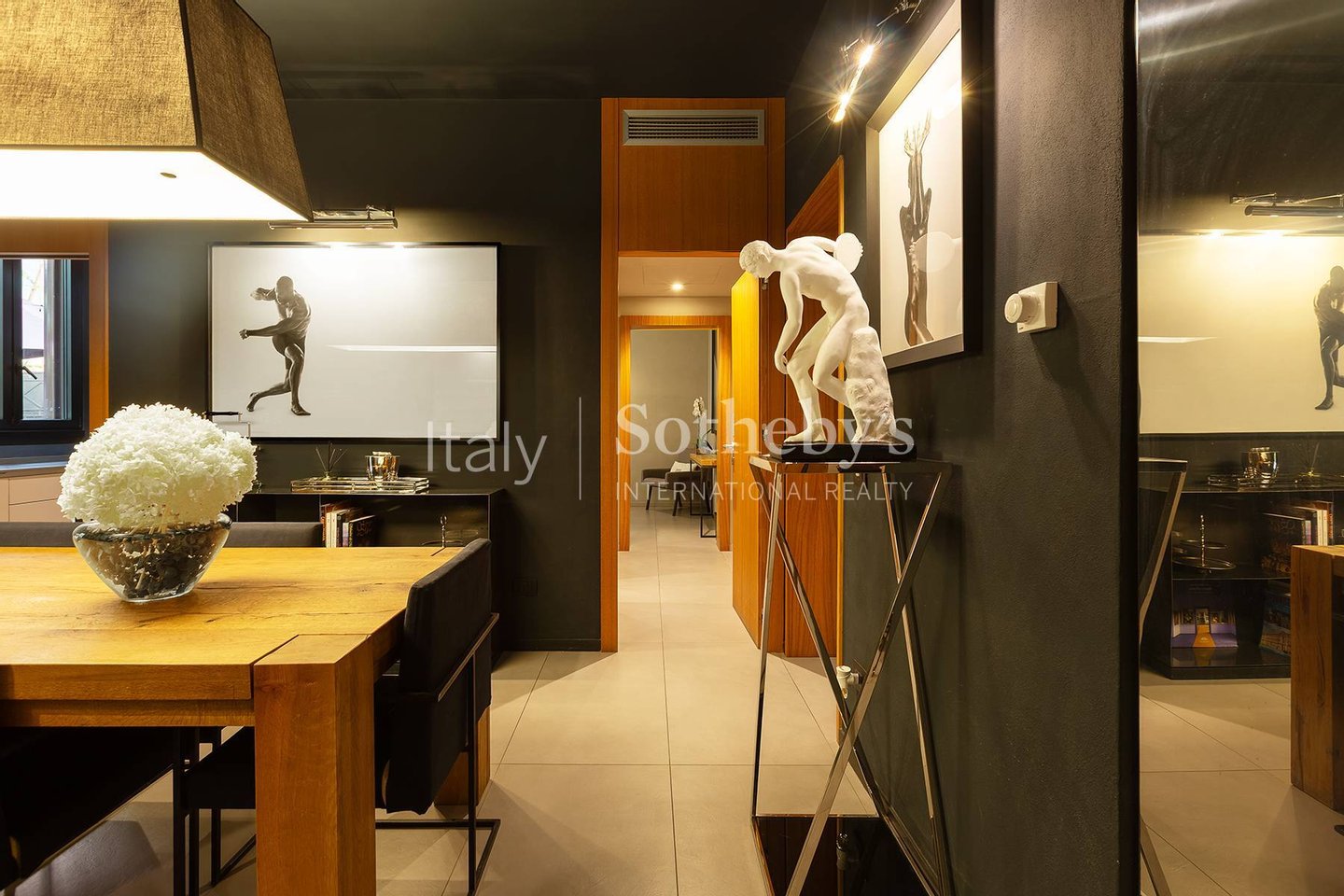 Ein gepflegter privater Garten, perfekt ausgestattet mit Lounge-Bereichen und Flächen für geselliges Beisammensein, empfängt Gäste in einer Atmosphäre absoluter Privatsphäre, ideal sowohl für entspannte Momente als auch für exklusive Veranstaltungen. Der Zugang erfolgt durch diesen stimmungsvollen grünen Bereich und schafft eine harmonische Verbindung zwischen Innen- und Außenraum.