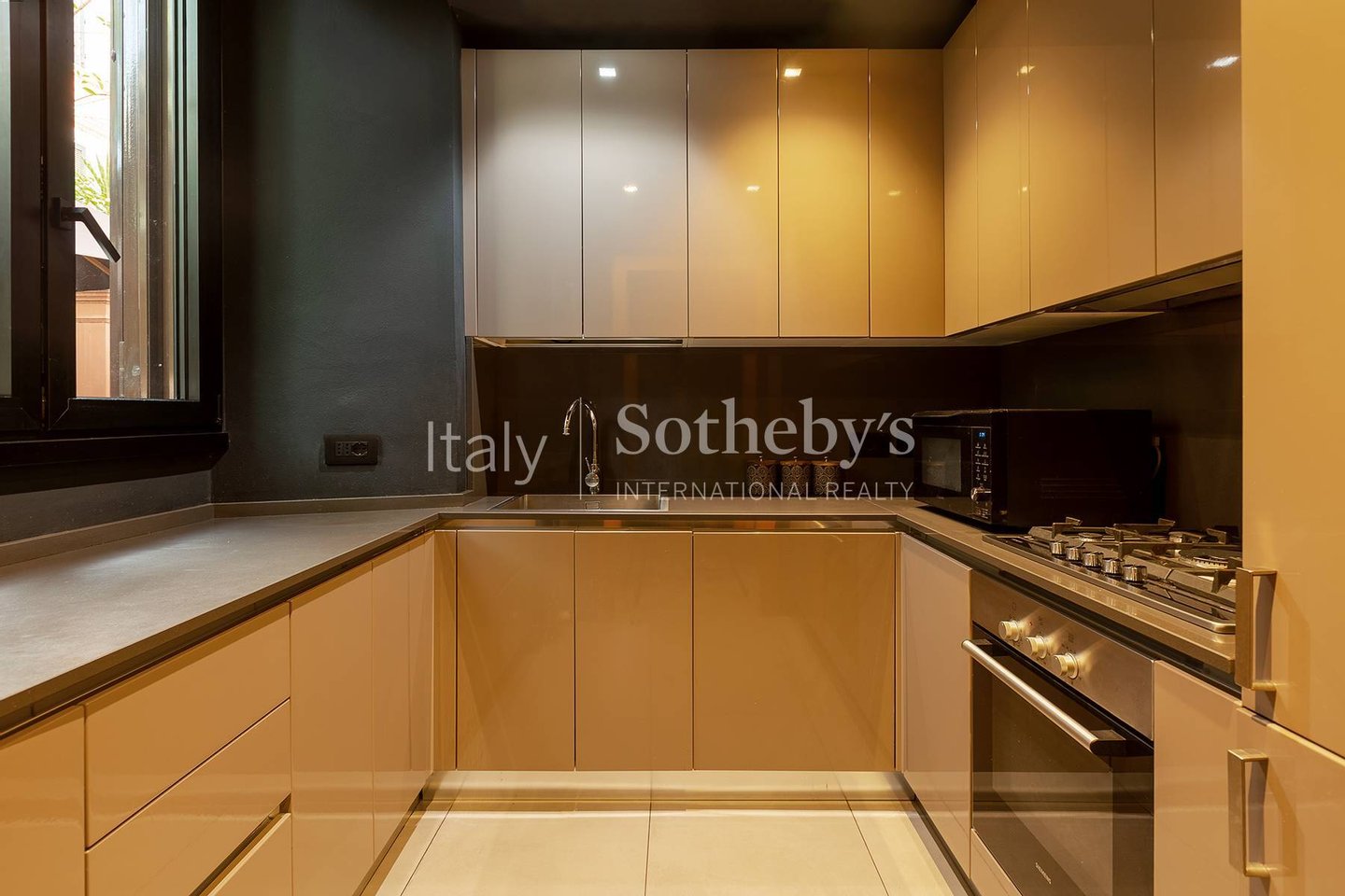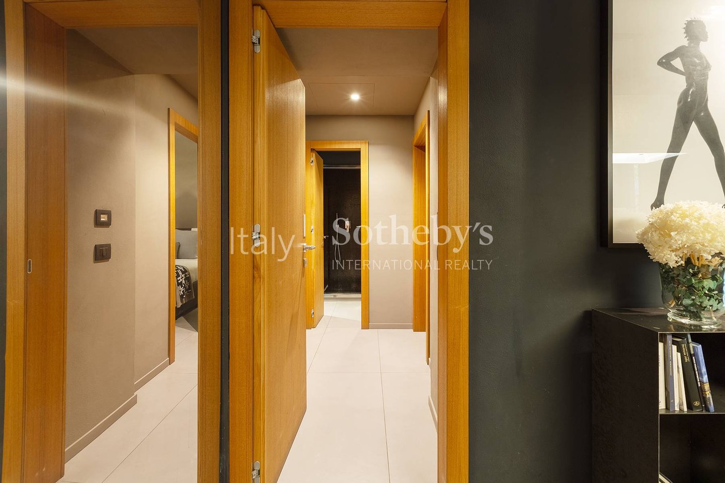 Die Räume zeichnen sich durch eine harmonische und durchdachte Aufteilung aus: ein heller Empfangsbereich, eine kompakte und voll ausgestattete Küche, vier elegante Suiten, jeweils mit Ankleide und eigenem Bad, sowie ein Flur mit maßgefertigten Einbauschränken, ein praktischer Abstellraum und ein zweiter unabhängiger Zugang.