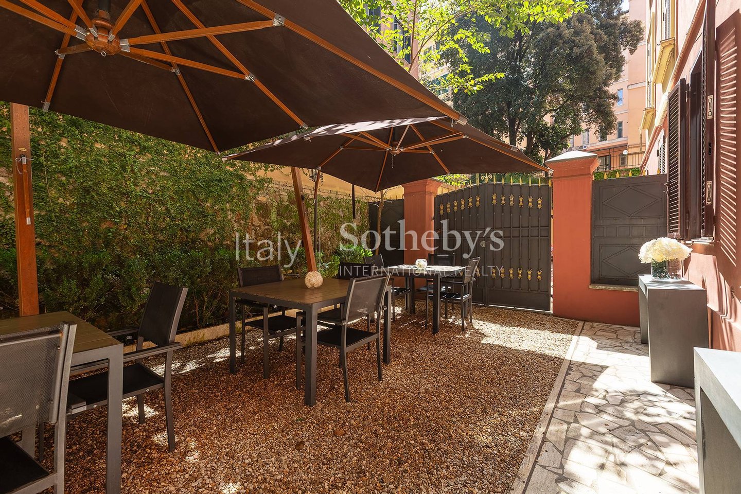 Elegante Repräsentationsimmobilie, gelegen im exklusivsten Teil der Viale Parioli, kürzlich einer sorgfältigen Renovierung unterzogen, die modernen Komfort, Funktionalität und raffinierte Ästhetik vereint.Ein gepflegter privater Garten, perfek