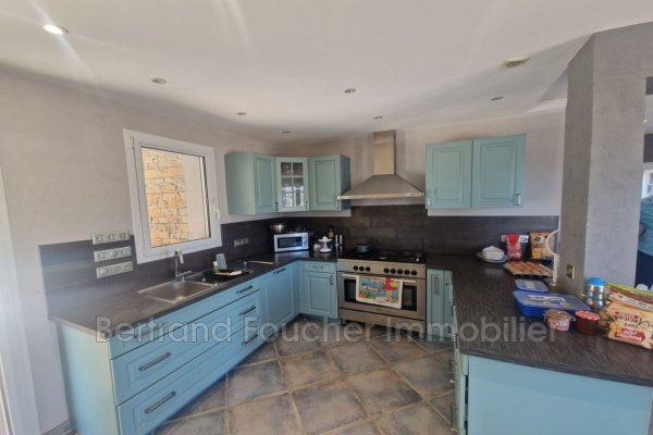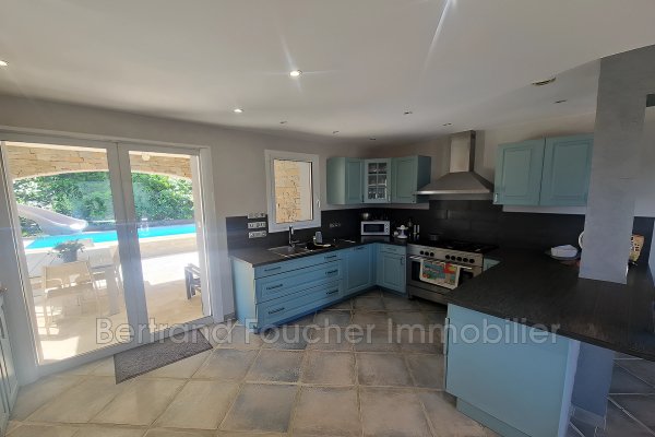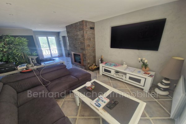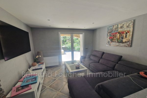 BERTRAND FOUCHER REAL ESTATE lädt Sie ein, im Herzen einer Sackgasse in einem ruhigen und begehrten Stadtteil einen atemberaubenden Blick auf das Maures-Gebirge zu entdecken. Diese elegante Villa mit etwa 170 m² vollständig klimatisierter Wohnfläche umfasst: