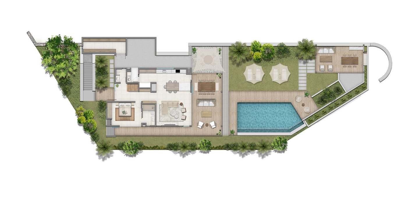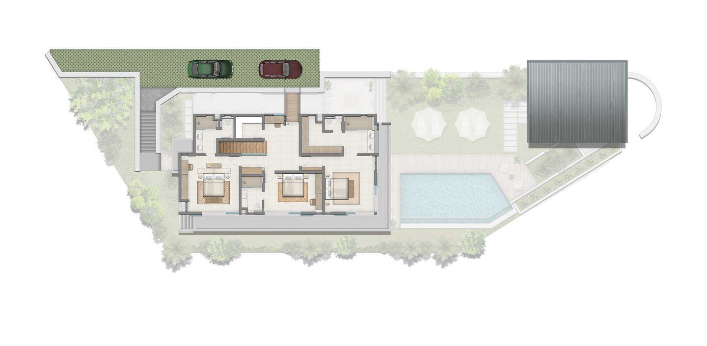 Zu den äußeren Merkmalen dieser Villa gehören die Nähe zu Bäckereien, Geschäften, Kindergärten, Mini-Märkten, bewachten Parkplätzen, Gärten, Zäunen, Veranden und Büros. Die Schlafzimmer mit eigenem Bad bieten optimalen Komfort für die Bewohner.