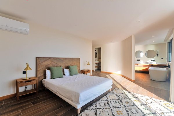 Im Inneren genießen Sie die Aussicht auf das Meer und die Berge, das Fitnessstudio, das Spa, den barrierefreien Zugang zu Schulen, Bushaltestellen, Golf und Krankenhaus. Die Villa ist außerdem sehr energieeffizient und verfügt über viele moderne Annehmlichkeiten wie einen Keller, Möbel, eine TV-Lounge, einen Einbruchmelder, Klimaanlage, ein Feuermeldesystem, einen Umkleideraum, einen Aufzug, einen Waschraum, einen Keller und eine voll ausgestattete Küche.
