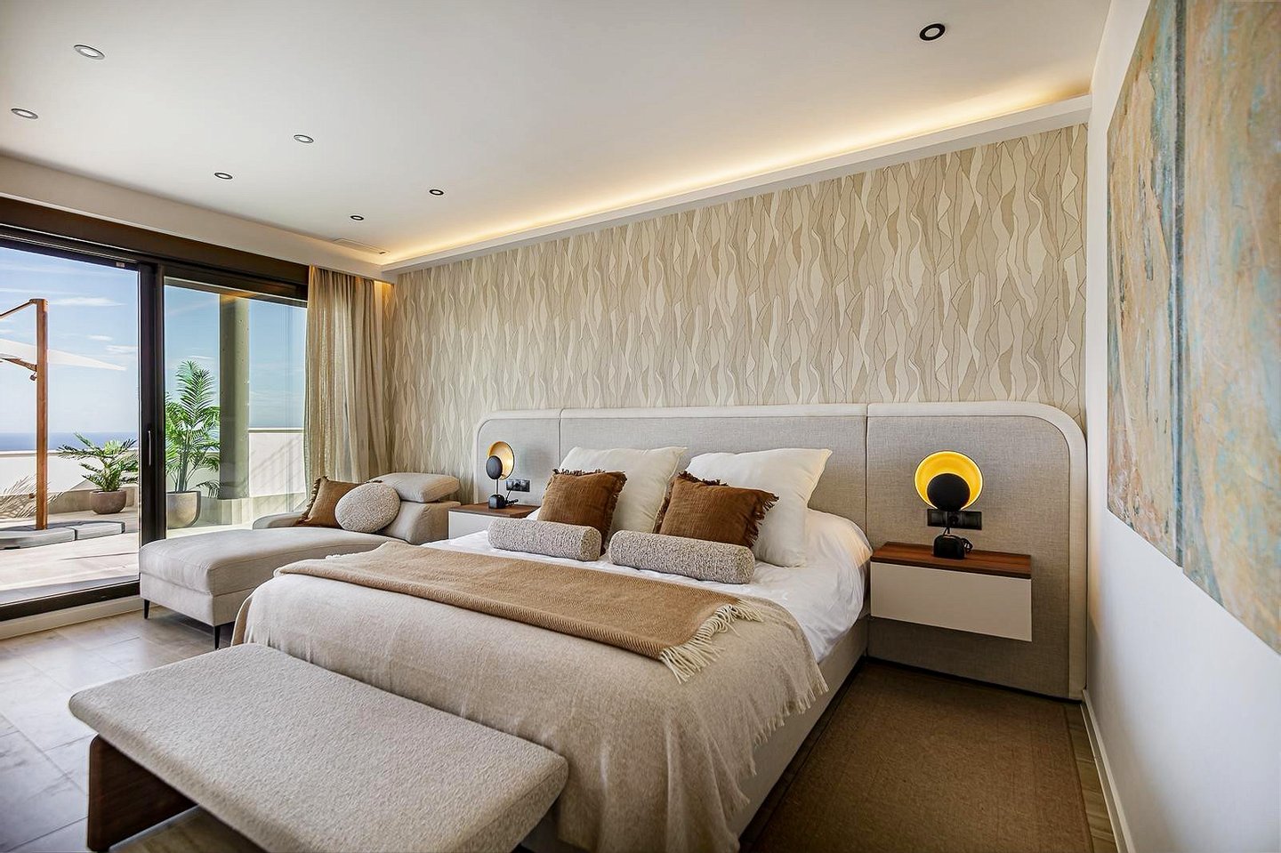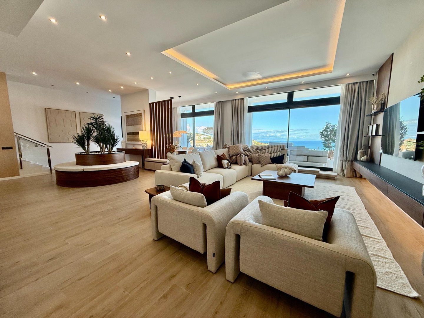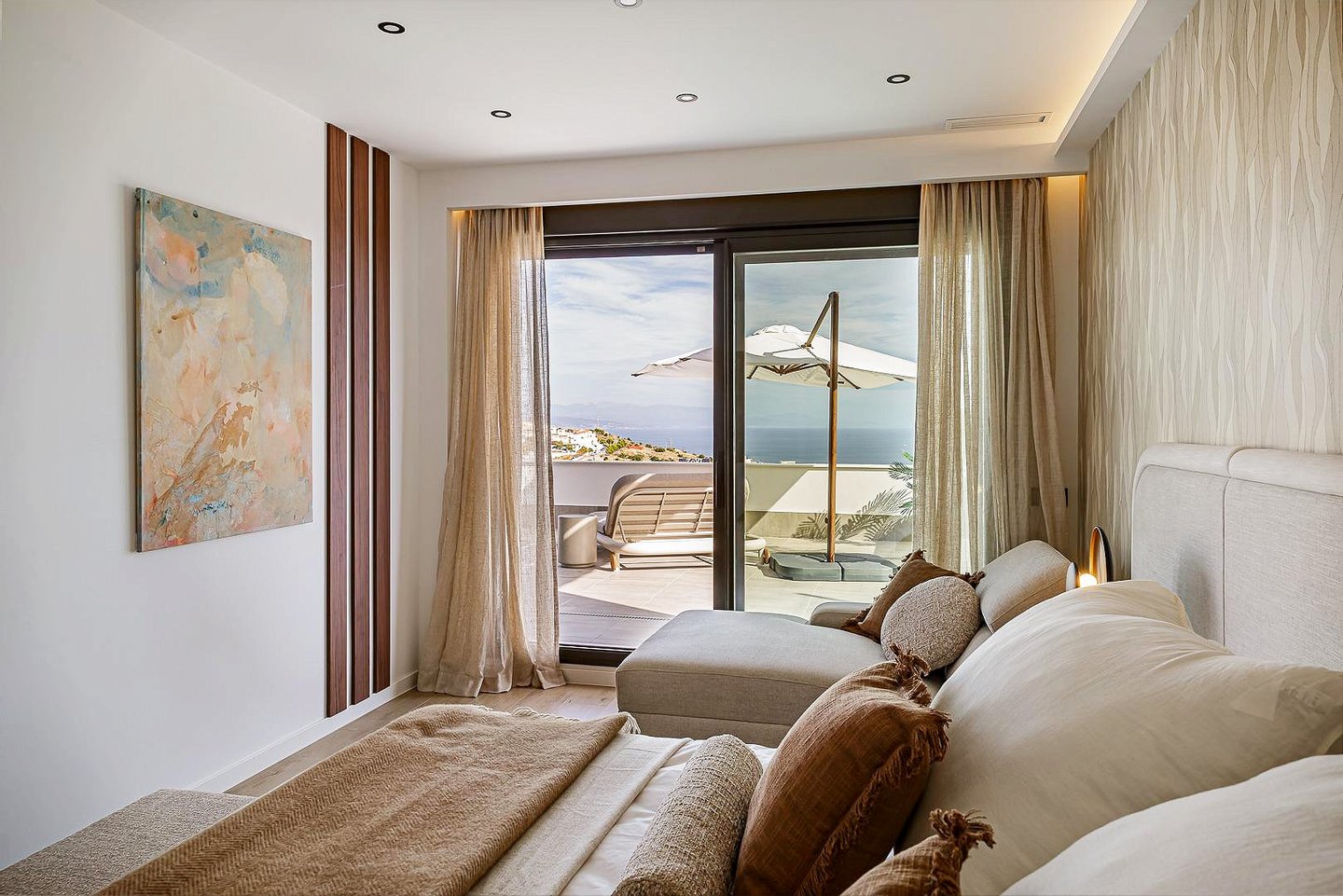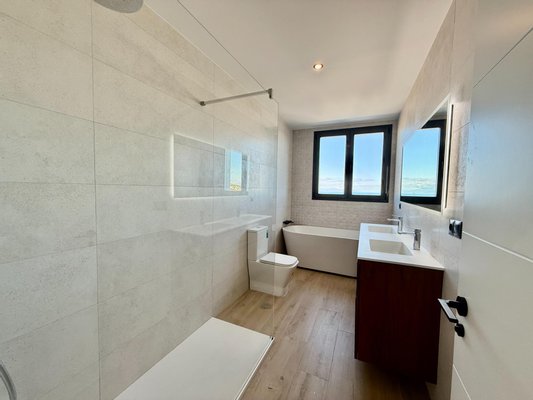 The property is distributed over three levels and features 4 spacious bedrooms with en-suite bathrooms, a guest toilet, two walk-in wardrobes and large private terraces where the sea views become part of everyday life.