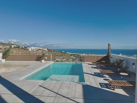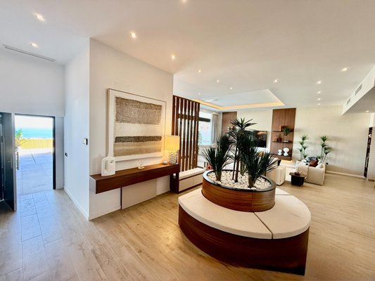 This stunning contemporary villa in Santángelo Norte, Benalmádena, offers uninterrupted panoramic views of the Mediterranean, complete privacy and spacious modern living.