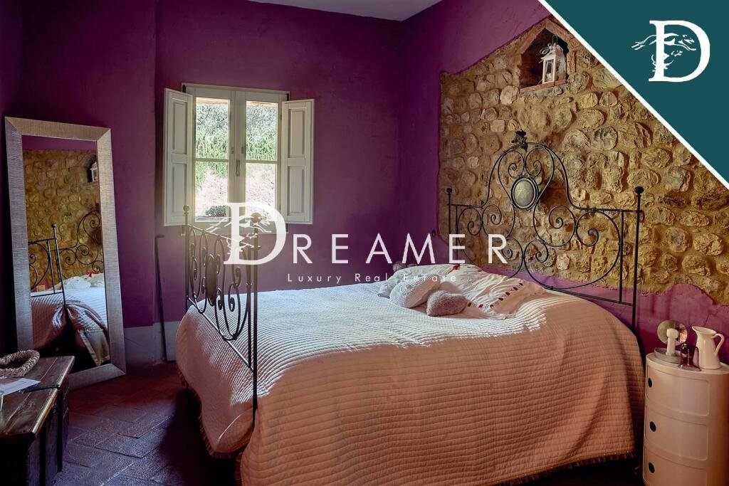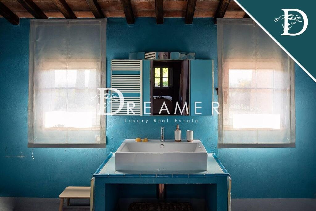 Outside, both the main villa and the cottage feature a private swimming pool, one with salt water, and are surrounded by approximately 2,450 square meters of land, planted with 40 olive trees that produce an excellent extra virgin olive oil. Each property also has convenient parking spaces.