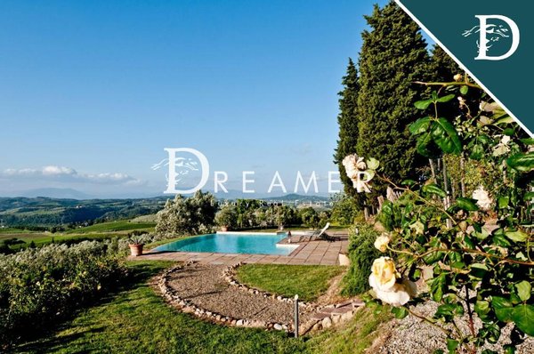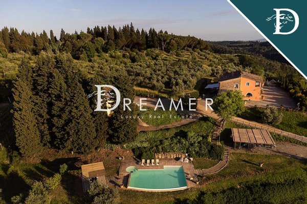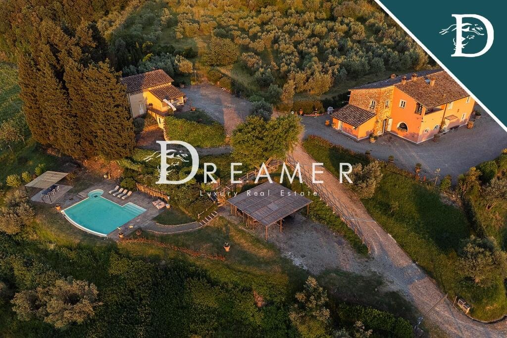 Splendid historic property with two swimming pools for sale in the picturesque hills of Montelupo Fiorentino, just 40 minutes from Florence. The property, dating back to 1000 AD, comprises a main villa and a cottage, both with private pools, and
