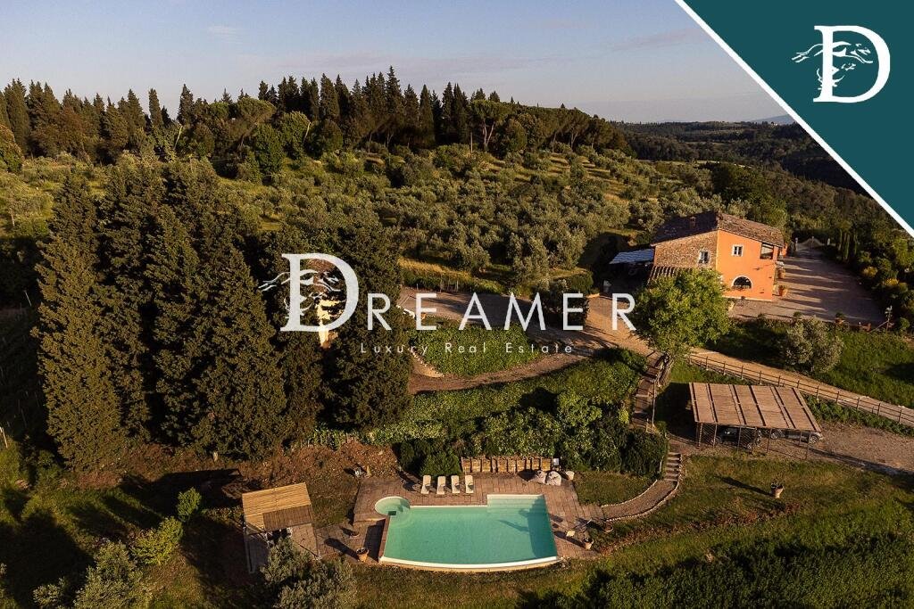 Splendid historic property with two swimming pools for sale in the picturesque hills of Montelupo Fiorentino, just 40 minutes from Florence. The property, dating back to 1000 AD, comprises a main villa and a cottage, both with private pools, and extends over approximately 650 square meters, with a total of 7 bedrooms and 8 bathrooms.