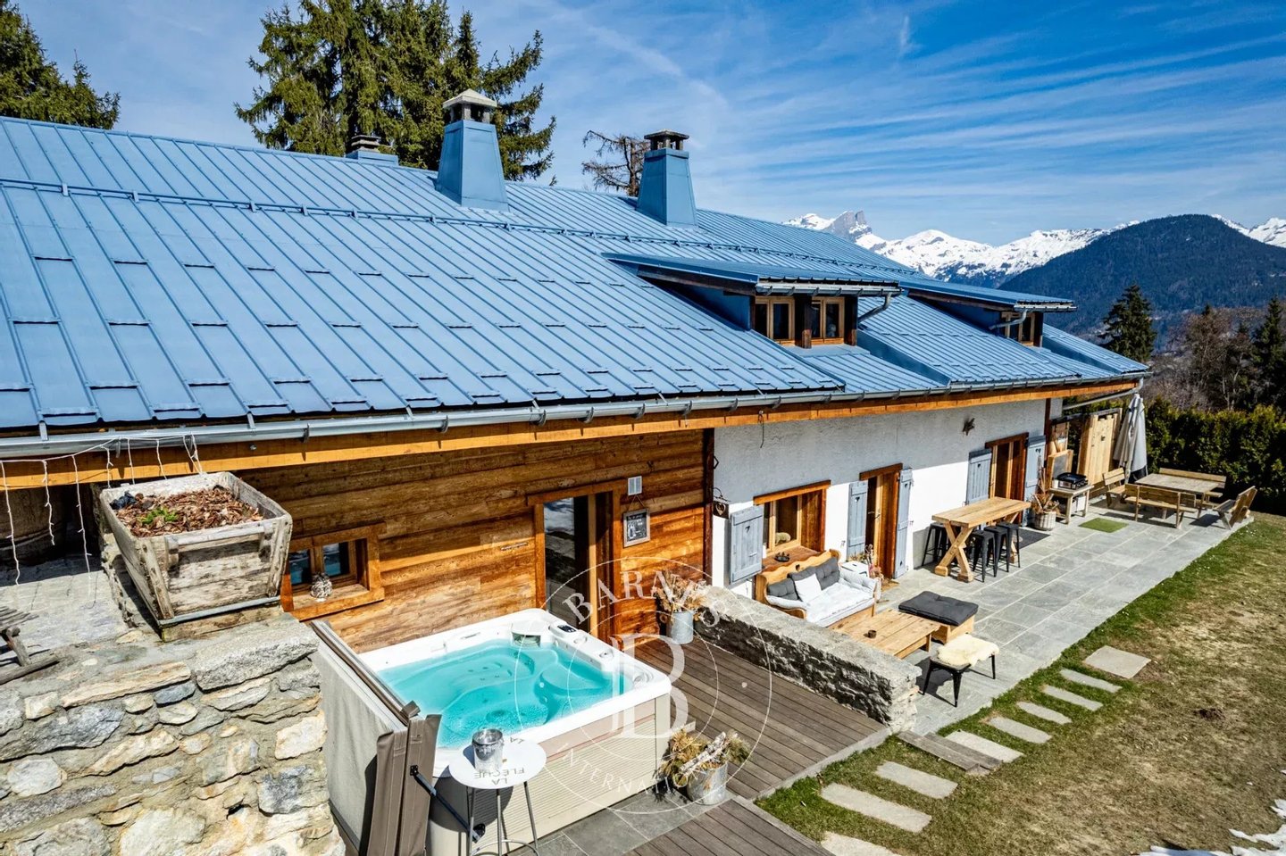 Barnes Saint-Gervais presents this fully renovated traditional Savoyard farmhouse, offering high-end features and exceptional finishes a true gem nestled next to the Evasion Mont-Blanc ski area. Renovated with premium materials, this property seamlessly combines authenticity with modern comfort and elegance. It boasts breathtaking panoramic views over the Mont Blanc massif and the Fiz mountain range. 2089 m2 piravtee plot.