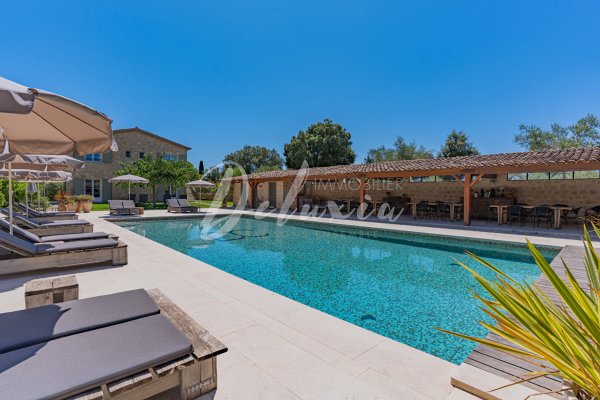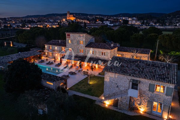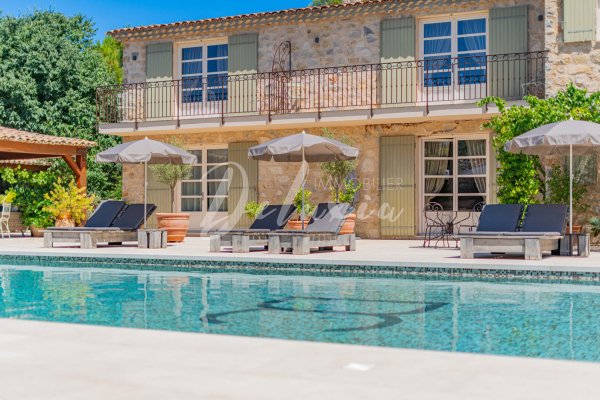 Im Herzen eines landschaftlich gestalteten Parks von 3,8 Hektar, zwischen Olivenbäumen, Mandelbäumen und Brunnen, bietet das Anwesen eine privilegierte Lage. Es gibt außerdem einen Petanque-Hof, eine großzügige Garage von etwa 120 m² sowie ein Bohrloch mit Stausee.