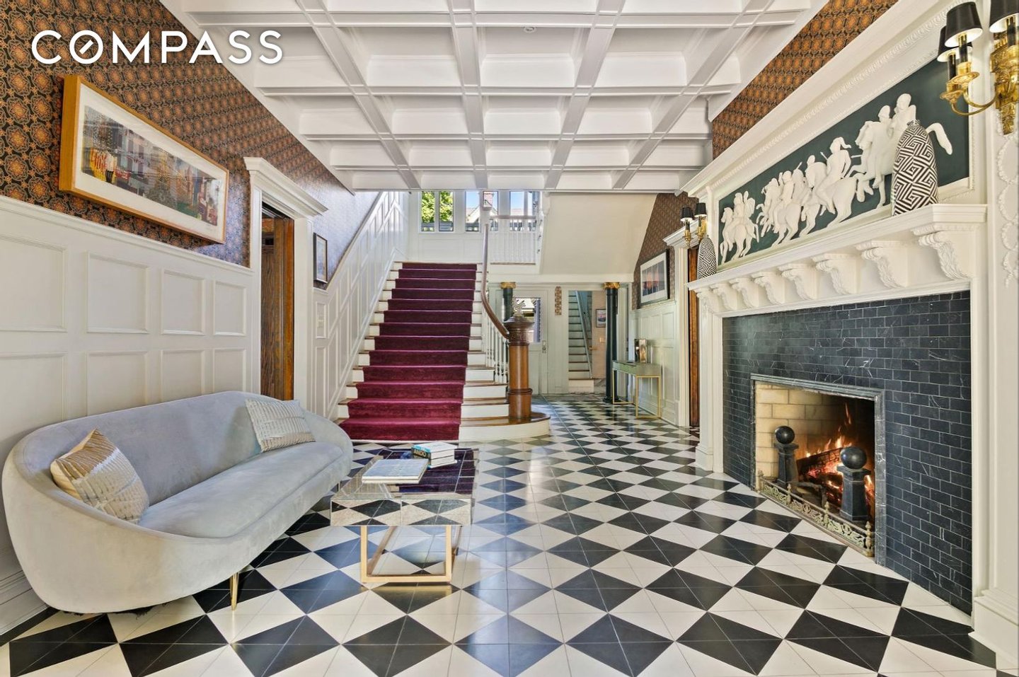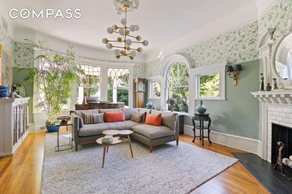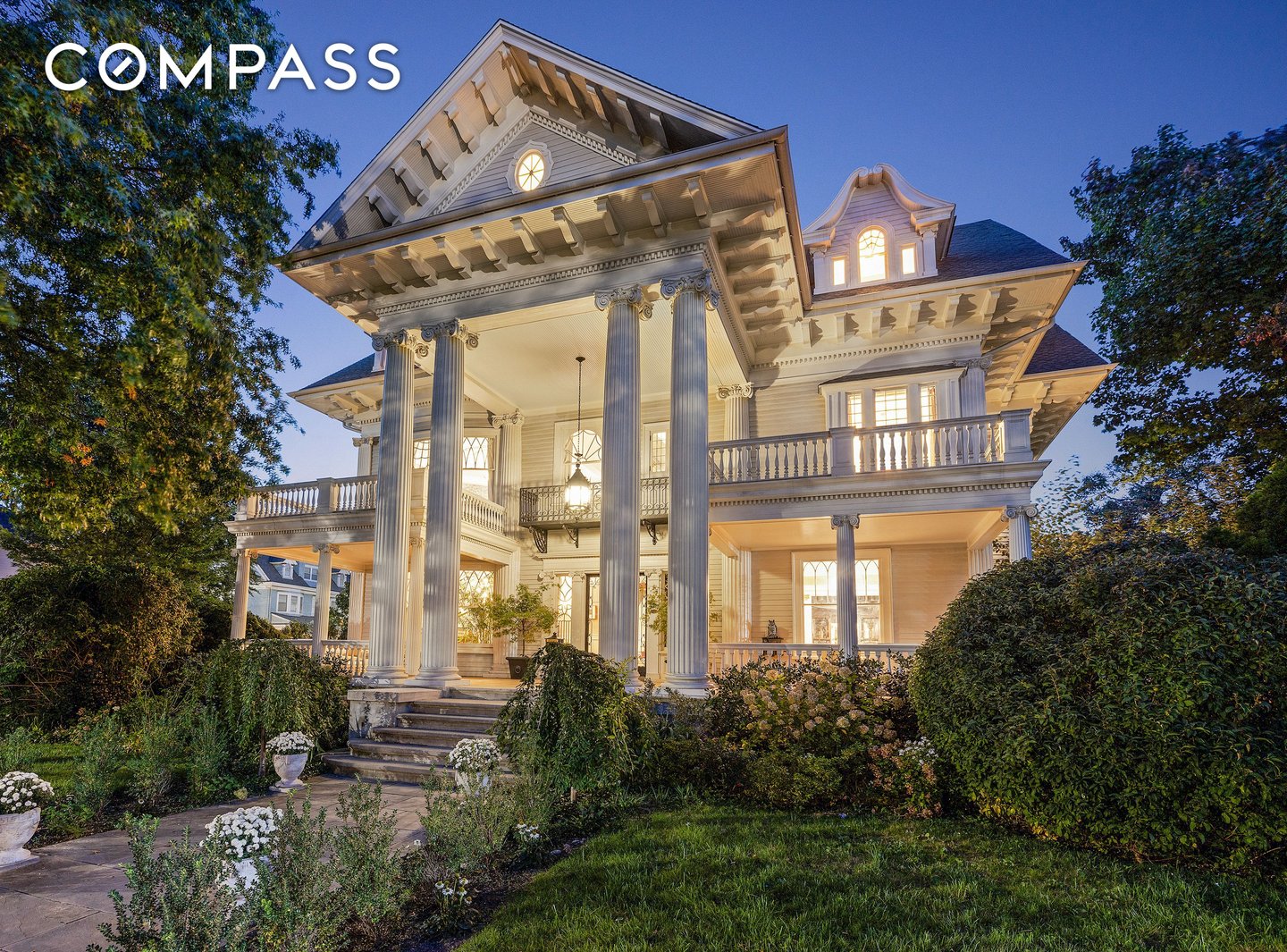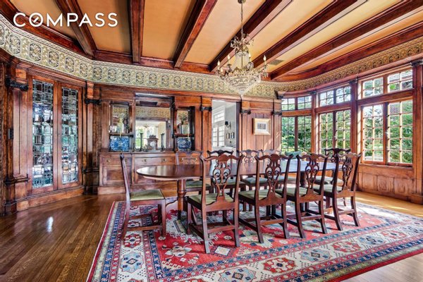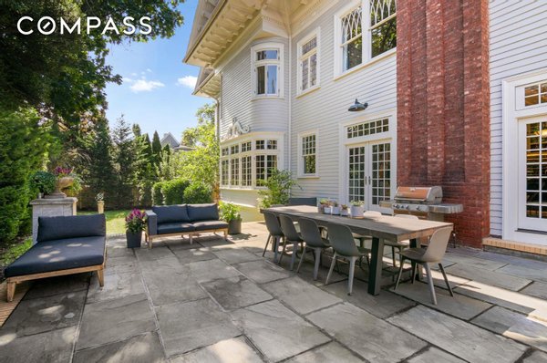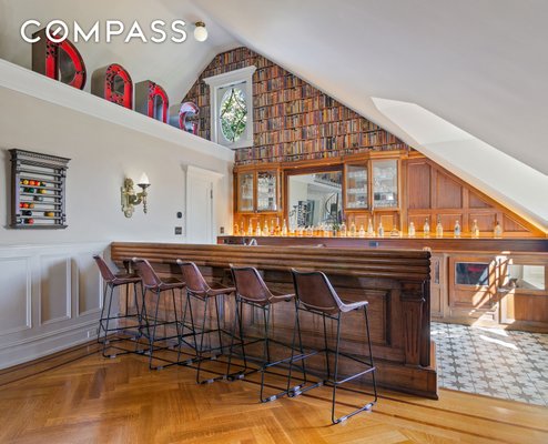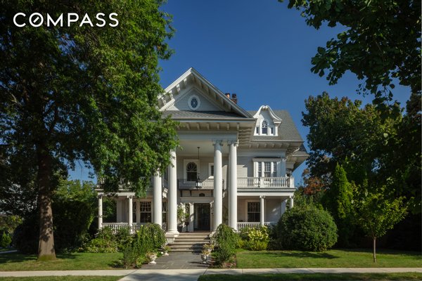 4% COMMISSION TO THE BUYERS BROKER! This majestic turn-of-the-century mansion was built for the New York Industrialist George Gale in 1905 by H.B. Moore, a disciple of famed architect Stanford White, inspired by White’s seminal design of the Atlantic Yacht Club in Seagate. The Gale Mansion is featured in the American Institute of Architects Guide to New York City, a rare distinction for a single-family house. It has appeared in numerous feature films and television shows, and is one of the most iconic homes in Brooklyn. Situated on a third of an acre, a lush and private sprawling corner parcel on Albemarle Road, which was described by The New York Times’ Christopher Gray as “one of the grandest residential streets in the whole city”, stands the Gale Mansion, the Crown Jewel of the Prospect Park South Historic District, an exuberant masterpiece with a towering two-story portico crowned by eyebrow dormers and supported by soaring, 25' foot fluted columns. This home presides over an impressive array of architecturally significant houses that line Albemarle Road, no ordinary city street, but a park-like boulevard with a landscaped greenspace. The serene setting is not sullied by on-street parking which is not allowed (do not fret, you have a 2-car garage). During the “open street” pedestrian program on weekends, Albemarle Road transforms into your very own park, just steps from your front door. Prospect Park and the Parade Grounds are only two blocks away for longer walks, runs, or bike rides. Clay court tennis, paddle boats, soccer fields, and horseback riding round out this unique country-in-the-city setting. The Gale Mansion, comprised of 22 rooms, 9 bedrooms and 7.5 bathrooms, is an 11,400 square foot turnkey home, entirely restored and renovated to a meticulous degree by its architect-owner, including state of the art mechanical systems and materials that provide the efficiency, comfort and luxury of a brand new home. The awe inspiring, covered porch, a spectacle of colossal scale and grandeur welcomes you into the breathtaking foyer that is a showcase of beautifully restored original detail including the sweeping, grand staircase and the working fireplace with its original neoclassical mantel- this foyer is no mere hallway, but a grand room you will enjoy spending time in by the wood fire, or receiving party guests. The sun-drenched living room boasts a Calacatta marble mosaic fireplace with a 19th century carved wood mantel and very rare round over-mirror. The room is accented by a modern Jonathan Adler chandelier. Enter the adjacent handsome library through the mahogany pocket double doors, and luxuriate in the richly stained oak and leather wainscoting, built-in bookshelves and custom oak cabinetry. The parlor, with rounded corners, highlights period sconces that frame stately windows and ornamental trim that complements Victorian inspired wallpaper. Host elegant soirées in the mahogany-paneled dining room with a splendid leaded glass breakfront, working gas fireplace, and magnificent wall of windows that reveals a tranquil view to the garden and patio. The heart of the home awaits in the 700-square-foot chef’s kitchen equipped with top-of-the-line appliances—including a Sub-Zero refrigerator, Viking pro-range and double oven, and 3 Fisher Paykel dish washers—a Parisian mirror-glass backsplash, a carved marble farm sink, a super-hard, natural Calacatta quartzite center island adorned by antique bronze chandeliers, gleaming stainless steel countertops, bespoke cabinetry, an oak library rolling ladder by Putnam & Co, as well as the finishing touch- a wood-burning fireplace and antique limestone mantel sourced from a castle in Scotland. An airy breakfast nook seating 6, provides a cozy spot for casual dining, and through the French doors is an expansive bluestone terrace overlooking a lushly landscaped south-facing lawn, the quintessential setting for alfresco dining and intimate garden parties. On the second level, the palatial sun-kissed primary suite offers a luxuriously serene retreat embellished with a hand-carved decorative fireplace, and an antique bronze light fixture custom designed in Sweden for the flagship Lord & Taylor department store, as well as ornate oversized bow windows with curved glass. Two large closets and a glamorous, windowed dressing room with wall-to-wall custom storage lead to the beautifully appointed bathroom with a freestanding clawfoot tub, double-sink vanity, oversized glass-enclosed shower with soothing rain shower head, a separate water closet, mosaic marble tile floor, custom oak cabinetry and mirrored subway tile backsplash. All of it furnished with radiant floor heat and zoned air conditioning for ultimate comfort. In addition to the primary suite on this floor are four generously proportioned bedrooms and two baths, one of which features an adjoining office and en suite bathroom, offering versatility and abundant space for family, friends and remote office work. A paragon of Gilded Age splendor, the third floor showcases a 1,200-square-foot formal ballroom with a 17-foot vaulted ceiling that you will enjoy using for both entertaining as well as an everyday family great room- complete with a home theatre, billiards area, full-size antique bar and game room. A 19th-century spiral staircase and accompanying catwalk provide an elevated perspective leading to a 300-square-foot skylit reading loft or office. The third floor is completed by three additional bedrooms and two full baths. The sprawling layout continues down to the finished English basement that has a private entrance with 5 windows and its own entrance to the outside. It features a Swedish-inspired kitchen and living area with exposed beams and a wood-burning fireplace, home gym, Finlandia cedar sauna, and an entertainment room that can also accommodate visitors and staff. Preserved architectural detail and meticulous restoration blend seamlessly throughout with modern co