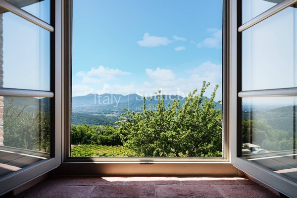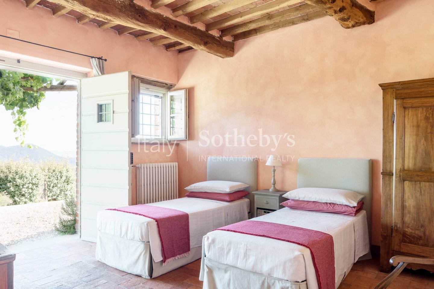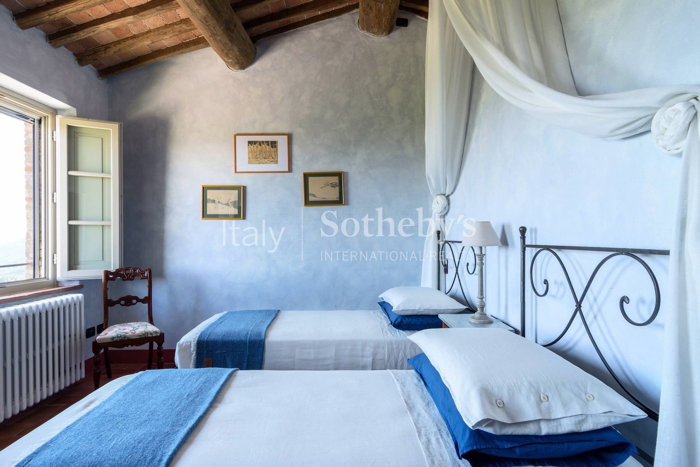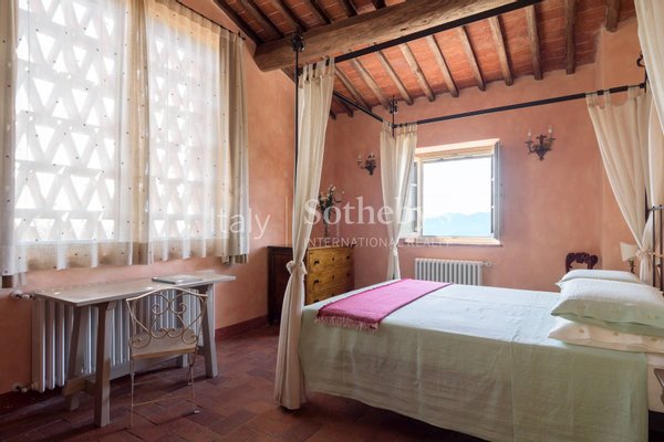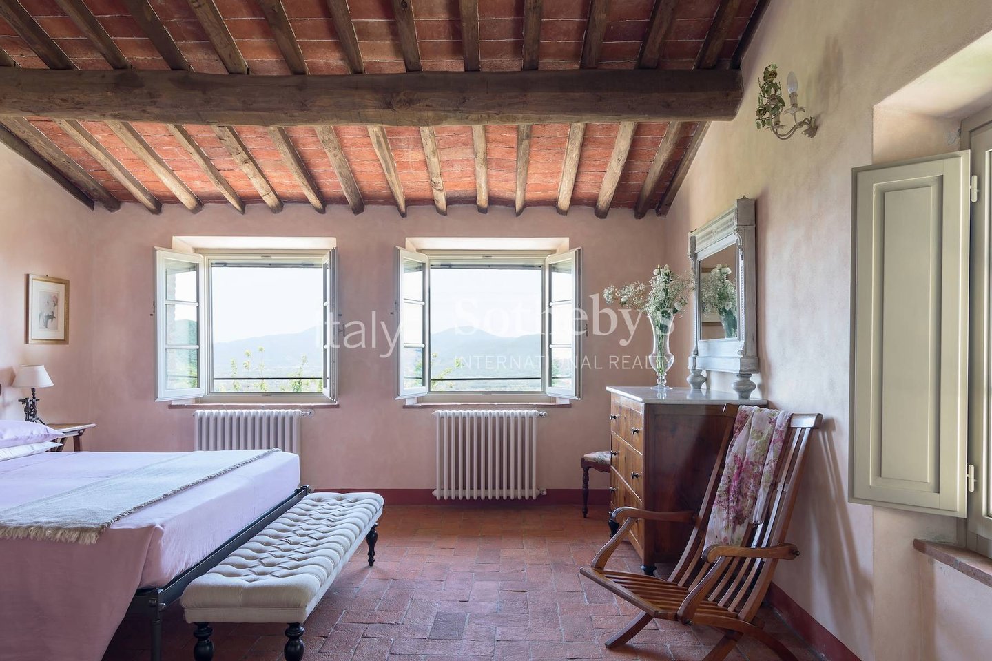 Nestled among the gentle hills of Lucca, less than 10 km from the city, this extraordinary villa dating back to the 11th century is a rare gem of history and charm. Built entirely of exposed stone, the villa has been meticulously restored with original, hard-to-find ancient materials to preserve its authenticity and soul, while integrating it with modern comforts. The villa covers about 450 square meters, with two large verandas of 50 square meters each: one with a dining area and stone barbecue, the other perfect for relaxation. The interiors include six panoramic air-conditioned bedrooms, six bathrooms, a spacious kitchen, a dining room, an elegant living room, a TV area, and a long corridor leading to the rooms. Outside, the property features a 14x7 meter panoramic swimming pool, surrounded by approx. 34 hectares of land, three of which are devoted to historic vineyards and three to olive groves. The oil produced is of exceptional quality and the wine, with its renowned historical label, has received prestigious awards. The villa enjoys a breathtaking view that stretches over 40 km, from the city of Lucca to Pisa, reaching the sea of Livorno on clear days. The unusual breadth of the view makes this panorama one of the most extraordinary in the entire Lucca area, and certainly one of the most beautiful in all of Tuscany. The exceptional panorama combines with a rare mix of ample usable space and the enjoyment of absolute privacy, making the property perfect for the realization of any project, such as a tennis court or heliport. There is also the possibility to expand the interior area, subject to local regulations, and to raise an outbuilding of about 80 square meters, possibly with an underground cellar, subject to approval of the relevant authorities.The property's strength lies in possessing numerous exceptional qualities that are extremely hard to find, all at once, in one place.