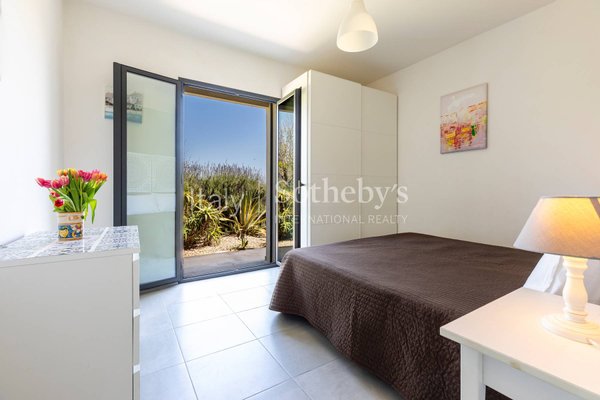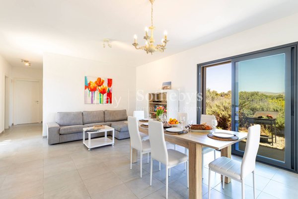 The spacious and bright interior spaces have been designed to create welcoming and relaxing environments, where natural light enhances every space and the connection with the surrounding landscape takes center stage. The villa features three double bedrooms and two bathrooms, offering an ideal layout for both private use and hosting guests.