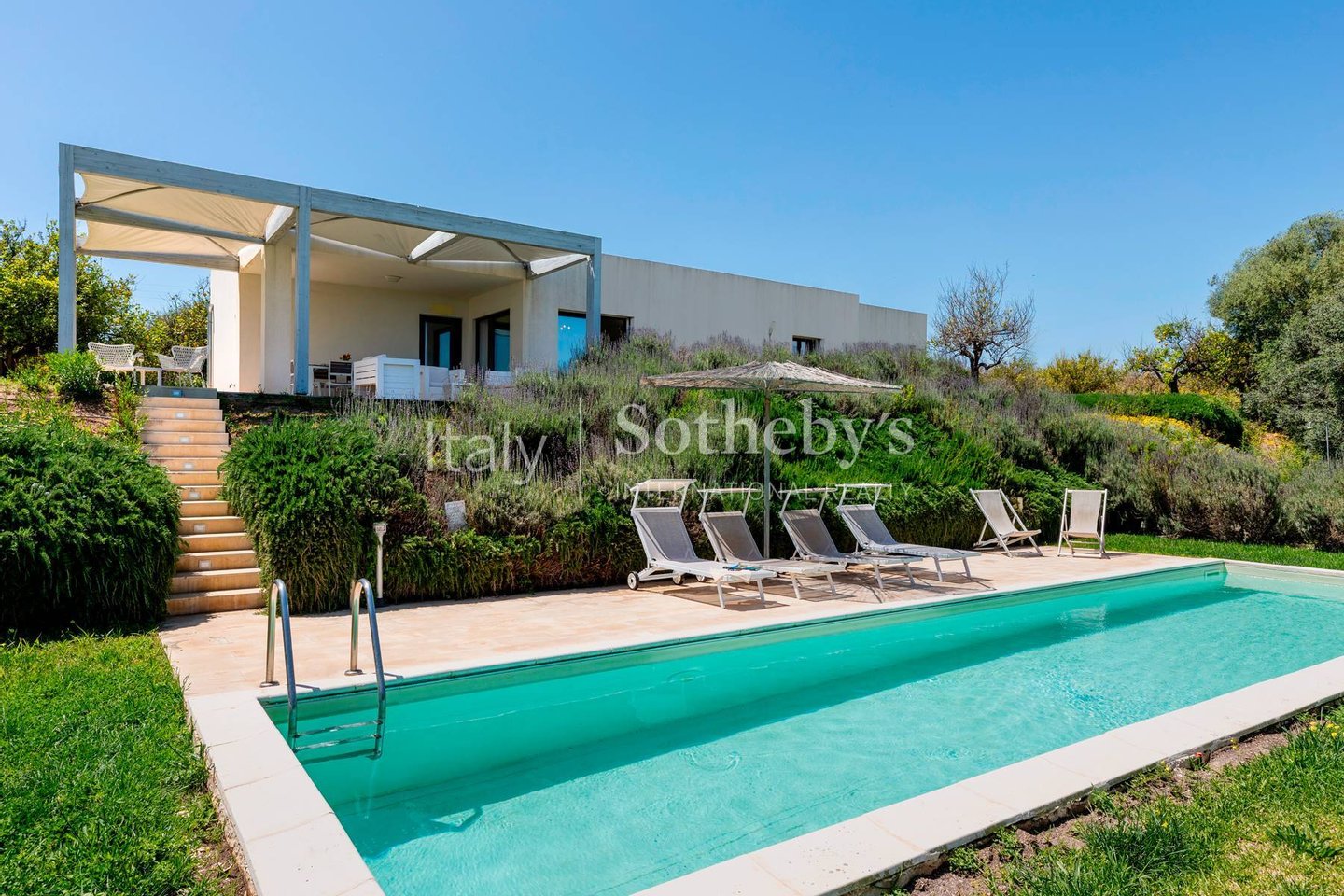 This modern villa enjoys a privileged location nestled between the hills of the Val di Noto and the crystal-clear waters of Sicily's southeastern coast, offering sweeping, picturesque views that accompany every moment of the day.An ideal retreat for those