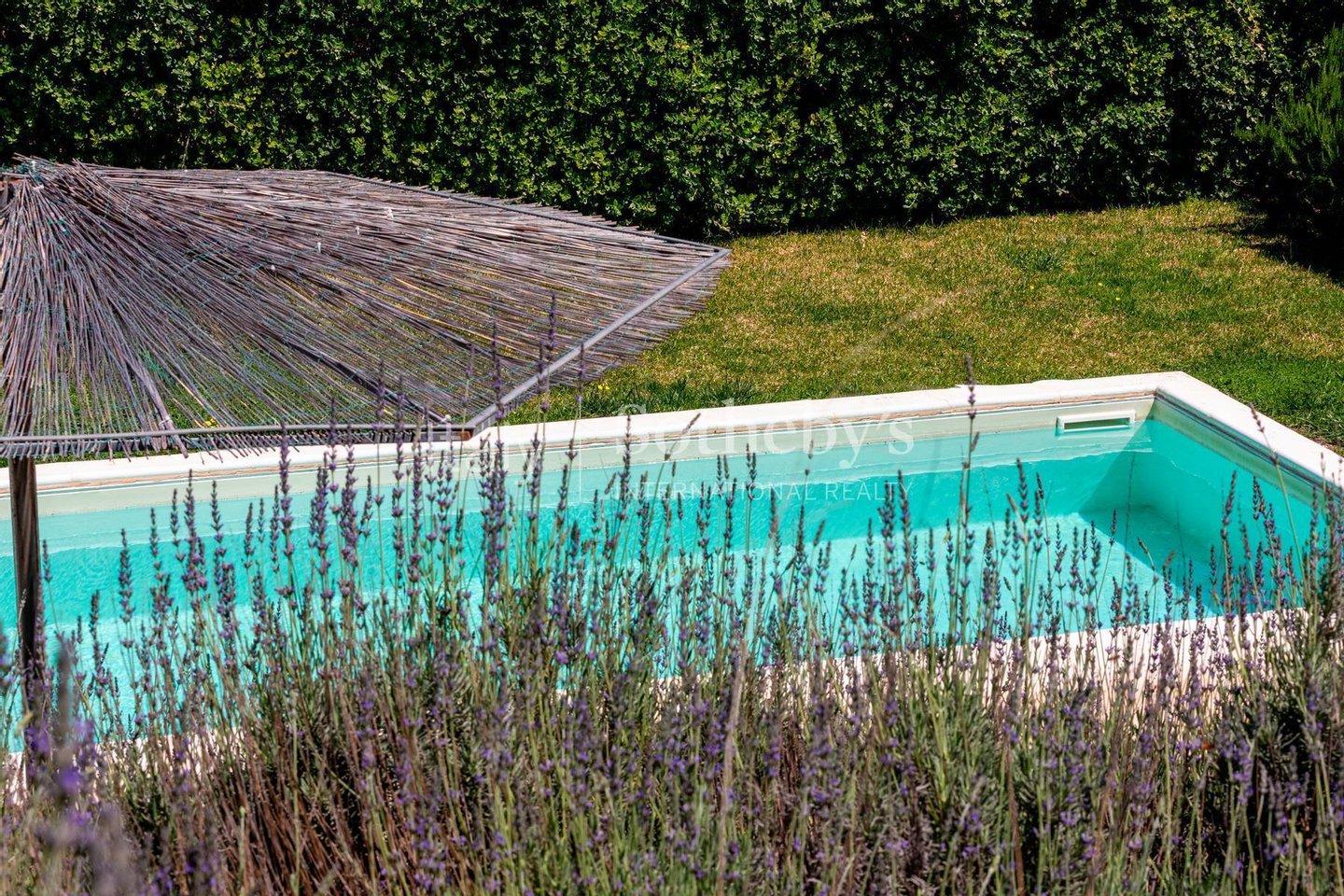 Outside, a private pool seamlessly integrated into the natural setting invites moments of relaxation and conviviality, immersed in the tranquility of the countryside.