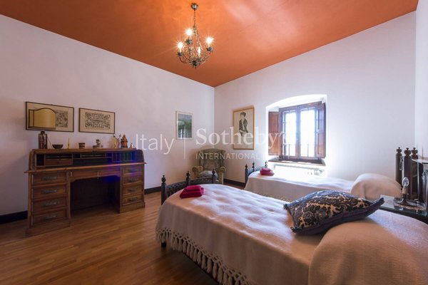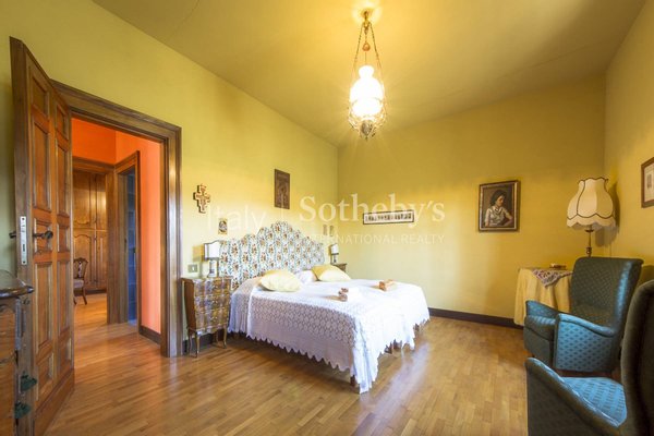 Die Immobilie erstreckt sich über einen Hügel, auf dessen Spitze sich mit Blick auf Weinberge, Olivenhaine und umliegende Hügel das Haupthaus mit Garage und Dependance befindet. Im Erdgeschoss liegen eine Taverne mit großem Kamin, Arbeitszimmer, Ankleideraum, eine charmante Weinkeller/Enoteca, Bad und Technikraum. Im gegenüberliegenden Flügel befinden sich eine große Garage und ein Apartment mit 2 Schlafzimmern, Wohnbereich, Küche und Bad. Vom Eingangsbereich führt eine Treppe in den ersten Stock, der sich zu einem eindrucksvollen Wohnbereich öffnet, bestehend aus doppeltem Wohnzimmer mit Kamin, Esszimmer mit angrenzender Küche und Gäste-WC; auf der gegenüberliegenden Seite befindet sich der Schlafbereich mit 6 Schlafzimmern und 3 Bädern. Davor liegt ein Infinity-Pool mit Blick auf die Weinberge.