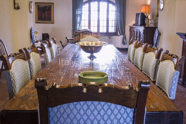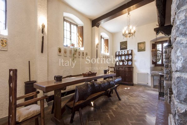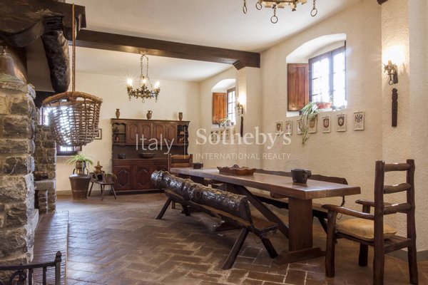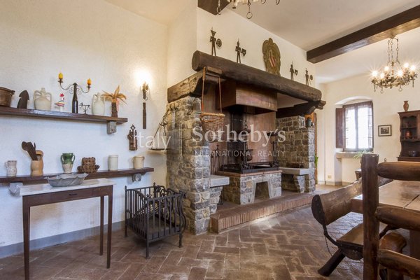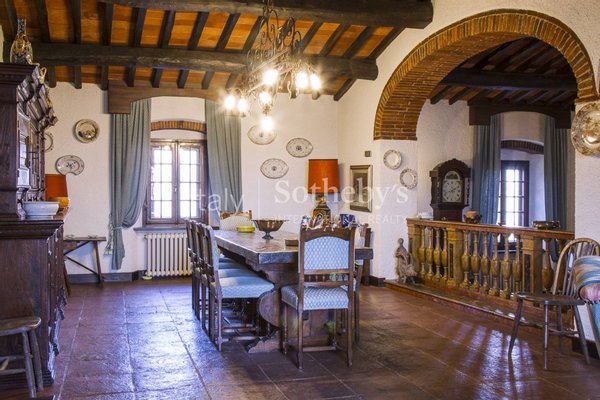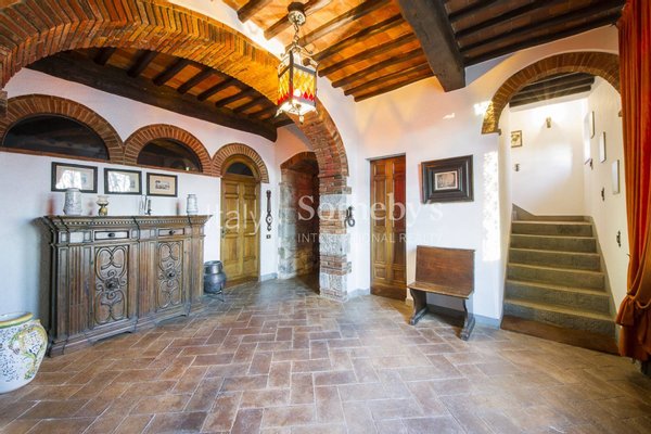 Der Stil und die verwendeten Materialien sind typisch toskanisch: Außenbereiche mit sichtbarem Naturstein, Böden aus antikem Terrakotta und Parkett, Kastanienholzbalken, große Kamine. Die nahegelegene Dépendance besteht aus Küche, 3 Zimmern, Wohnzimmer und Bad.