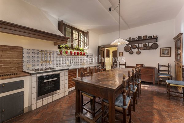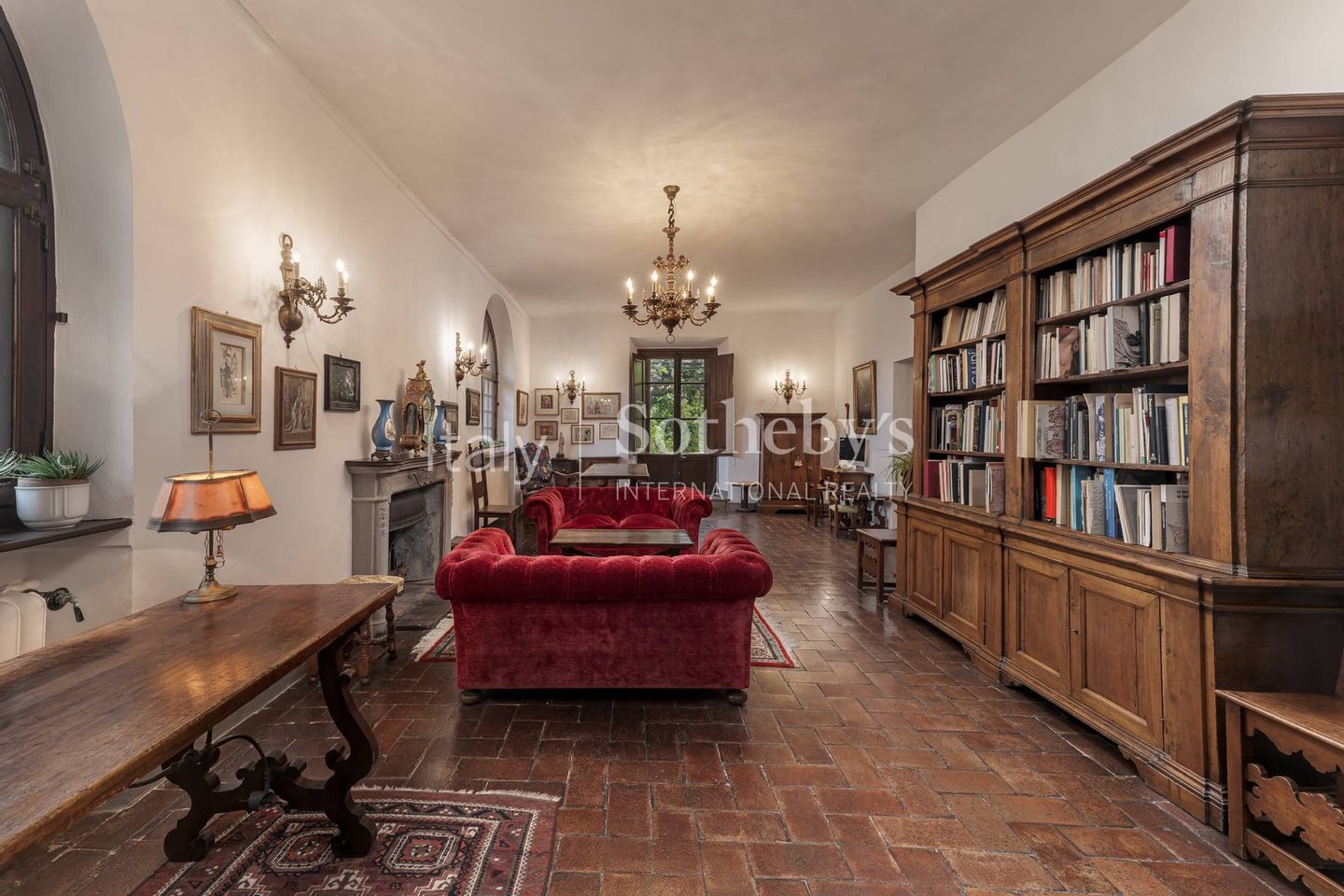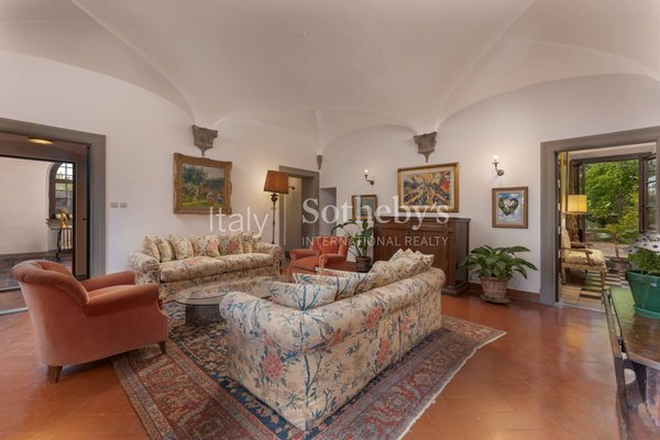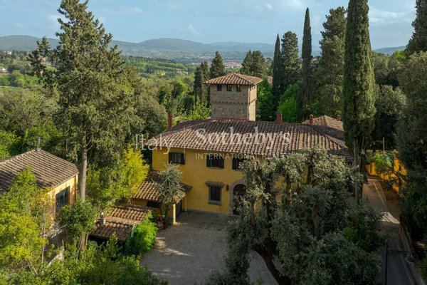 Im ersten Stock, erschlossen durch einen großzügigen Flur, befinden sich fünf Schlafzimmer und zwei Marmorbäder, alle mit herrlichem Ausblick. Über eine elegante Treppe aus Pietra Serena erreicht man den ersten Bereich des Turms mit einem Zimmer mit Blick auf Florenz, und weiter das Dachgeschoss, vollständig mit Fenstern versehen und mit beeindruckendem Panorama.