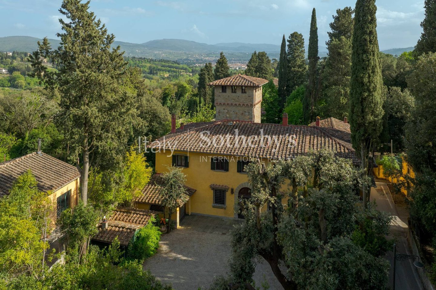 Elegante Villa in Florenz, auf dem wunderschönen Hügel von San Domenico, mit originalen historischen Elementen wie Terrakottaböden aus dem 19. Jahrhundert und Gewölbedecken, sowie einem charakteristischen Panoramturm mit Blick auf Fiesole und Florenz. Das Anwesen verfügt über einen herrlichen Garten von ca. 1.200 m² und einen doppelten Zugang, für Fahrzeuge und Fußgänger.