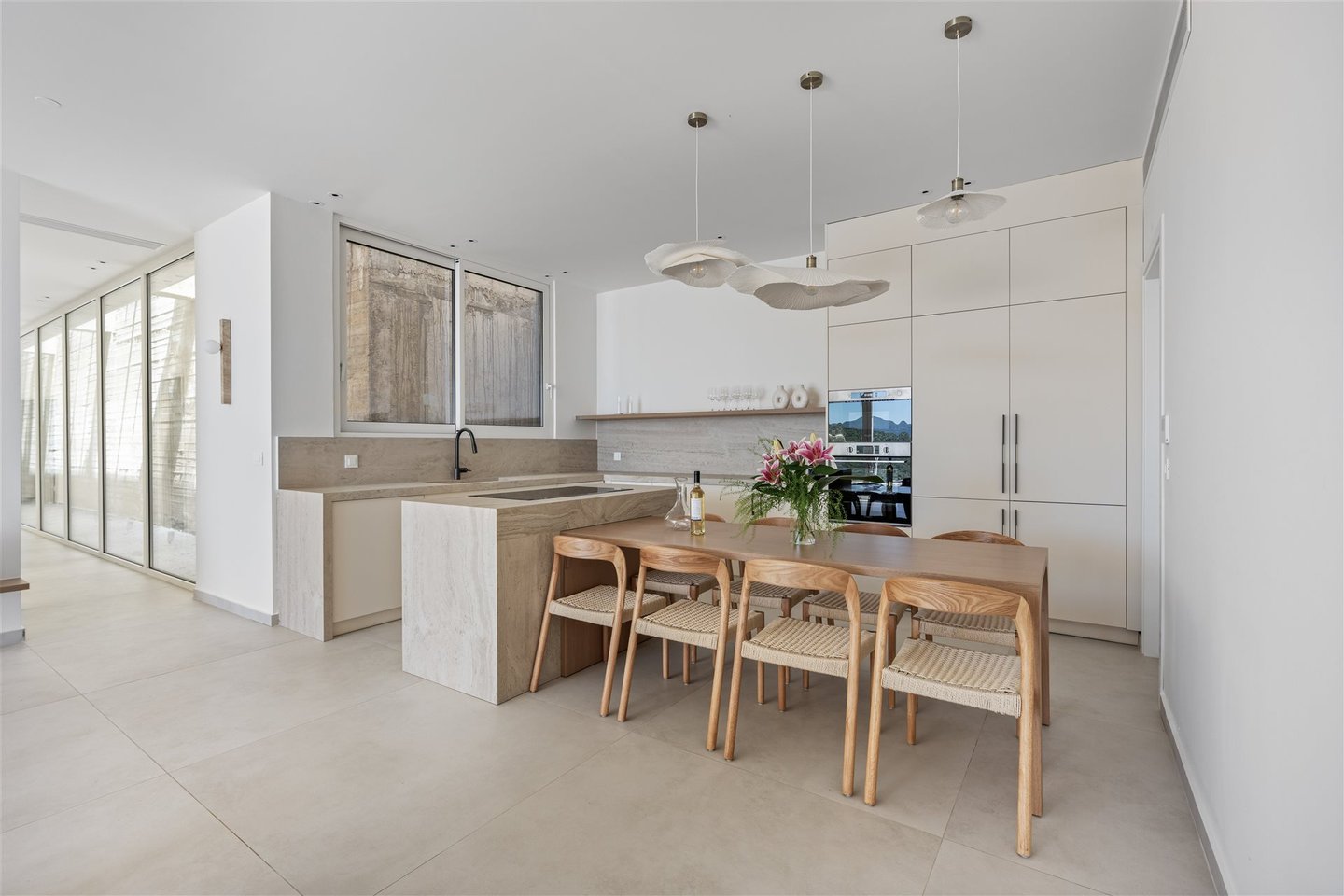 Sorgfältig bis ins kleinste Detail!! Ein Kunstwerk von zwei jungen Architekten, die ein atemberaubendes Haus mit einem faszinierenden Blick entworfen haben, der sowohl Sonnenuntergänge als auch Sonnenaufgänge genießt – eine extrem seltene Kombination!! Das Haus wurde auf einem Grundstück von ca. 1850 Quadratmetern gebaut; die Größe beträgt 180 Quadratmeter im Erdgeschoss und ein Keller von 45 Quadratmetern. Es verfügt über 4 Suiten mit jeweils eigenem Badezimmer. Die Villa liegt ca. 5 Autominuten vom Strand Ammusso entfernt und der Zugang dazu ist äußerst bequem.